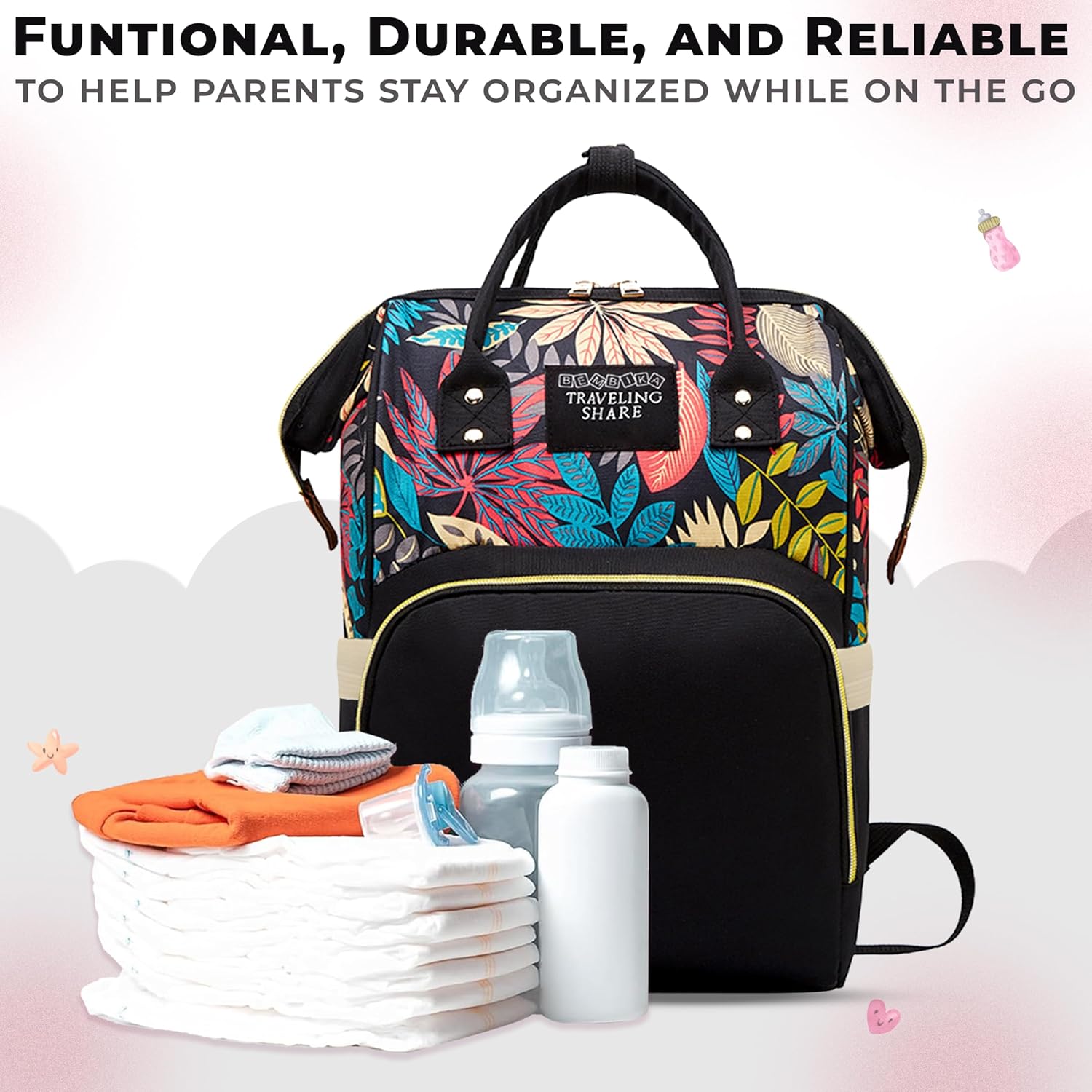 MULTI-FUNCTIONAL USE – The Bembika Diaper Bag is more than just a diaper bag. It serves as a Nursing Bag For Mothers, providing convenient compartments for all your nursing needs. This Maternity Backpack is designed to make your life easier, with features that cater to both you and your baby.