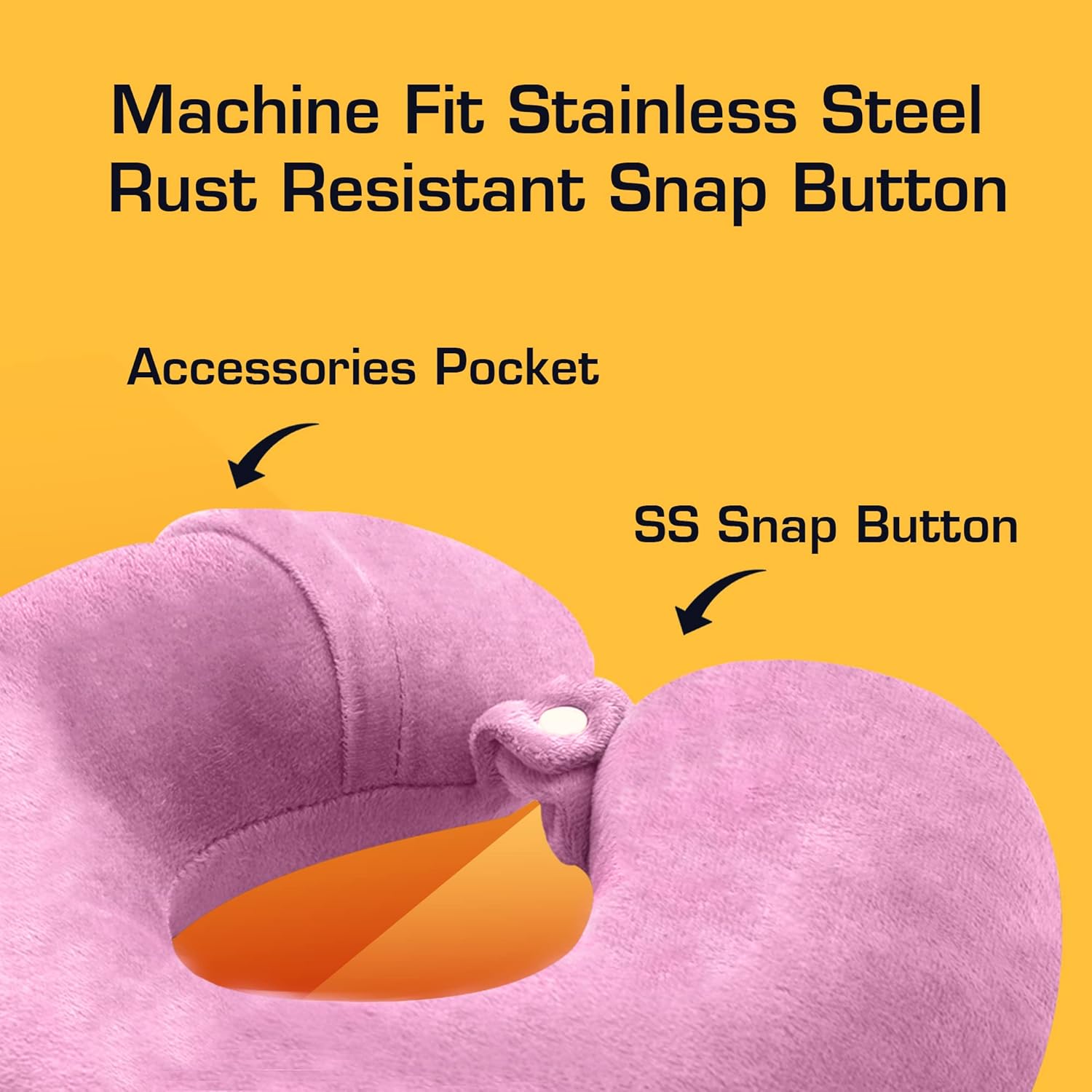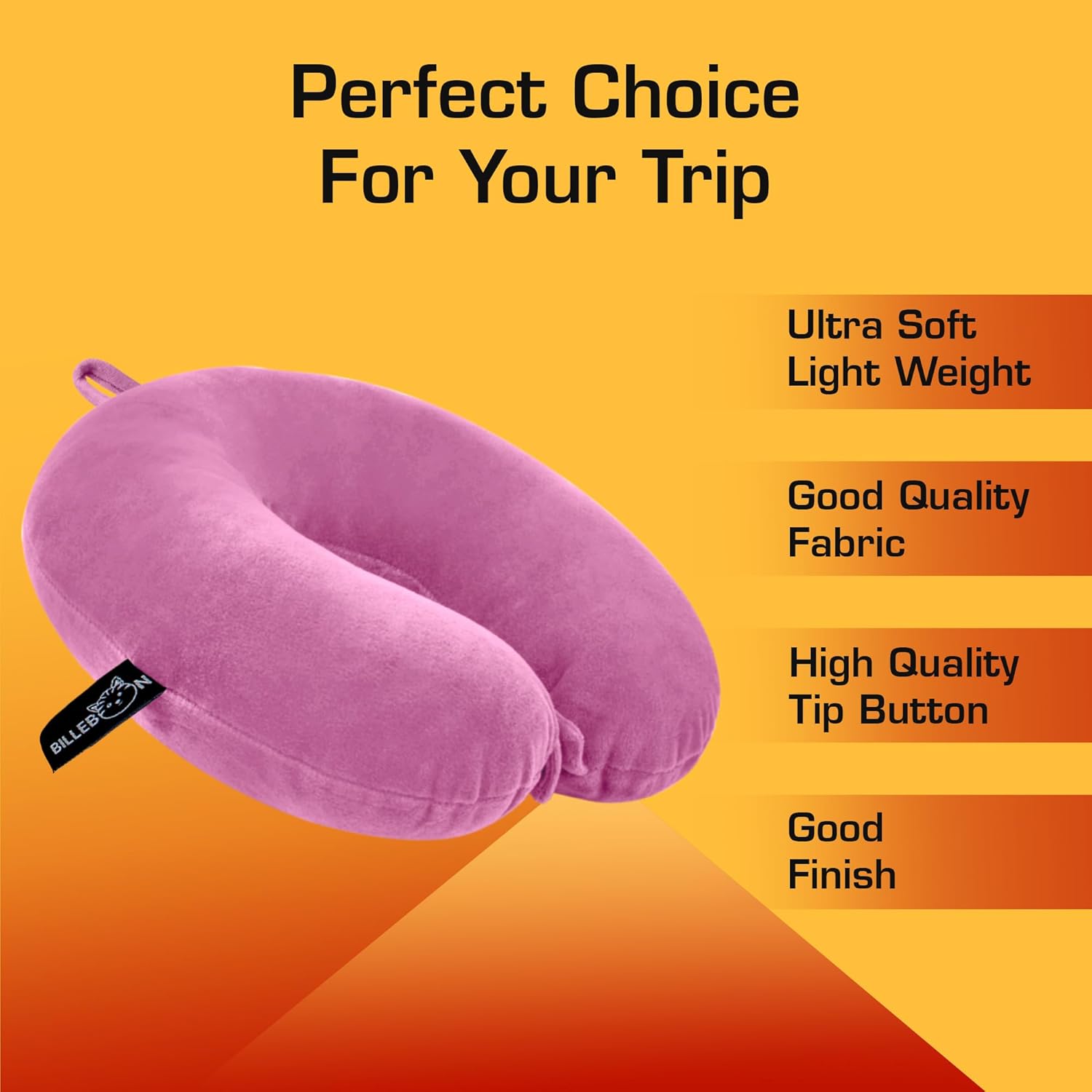 Billebon Premium Neck Pillow Eye Mask Combo Airplane Travel Pillow with Comfortable Velvet Sleeping Eyemask Head Rest Pillow (Pink with Eye Mask)