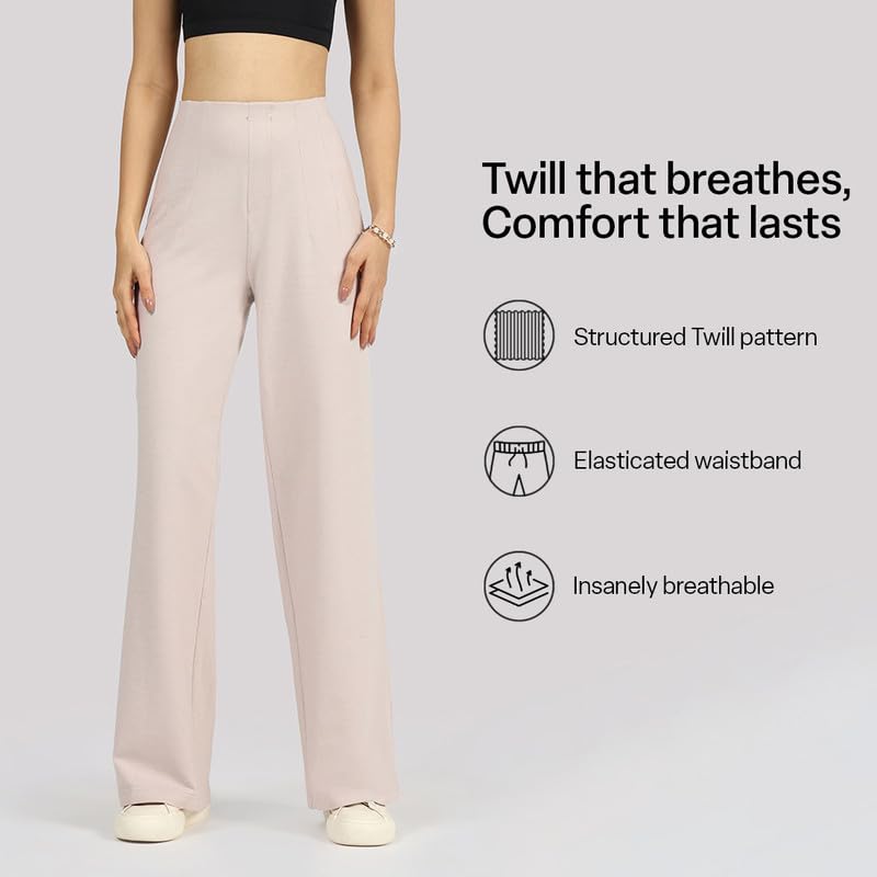 Meet the Work-to-Wine Twill Wide Dart Pants. Crafted in 95% cotton with a structured twill weave, this pair brings together breathable ease with a clean, tailored finish. The fabric carries insane stretch & softness that holds its shape and keep you cool through the day. Pleated in the front, it flatters without trying too hard. A mock fly detail and elasticated waistband keep things polished but comfortable. Two back pockets add quiet functionality, while the wide-leg silhouette moves with you—no matter where the day takes you. From work mode to unwinding ease, this is effortless dressing, done right.