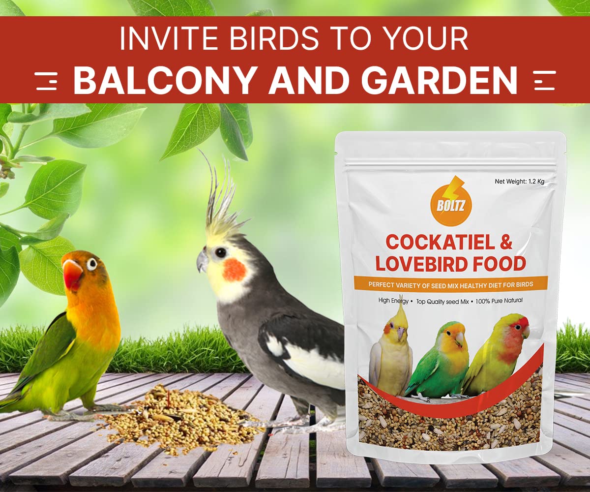 High Quality: Top quality food is the main source of energy,Vitamins and Minerals for Cockatiel and LovebirdsVariety Of Seeds: Boltz bird food is prepared with perfect variety of seed mix.Carefully mixed seeds, is natural, clean, convenient and easy to use foodHealthy Feather: Excellent for Cockatiel and Lovebird’s feather healthNo Chemicals: Boltz bird food is pure natural food. It does not contain any chemicals and artificial colorsEasily Digestible: Boltz bird food contains Cockatiel birds favorite canary seeds and striped sunflower seed. It is easy to digest and avoid any digestive system problems