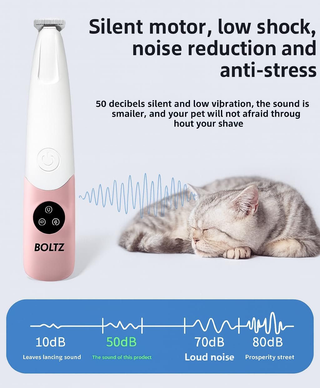 Boltz Cordless Pet Paw Hair Trimmer with LED Light & USB Rechargeable – Precise & Quiet Grooming for Dogs & Cats + Free Double-Hole Nail Cutter (worth ₹400), Safe Stainless Steel & Ceramic Blade for Paws, Buttocks, Wounds