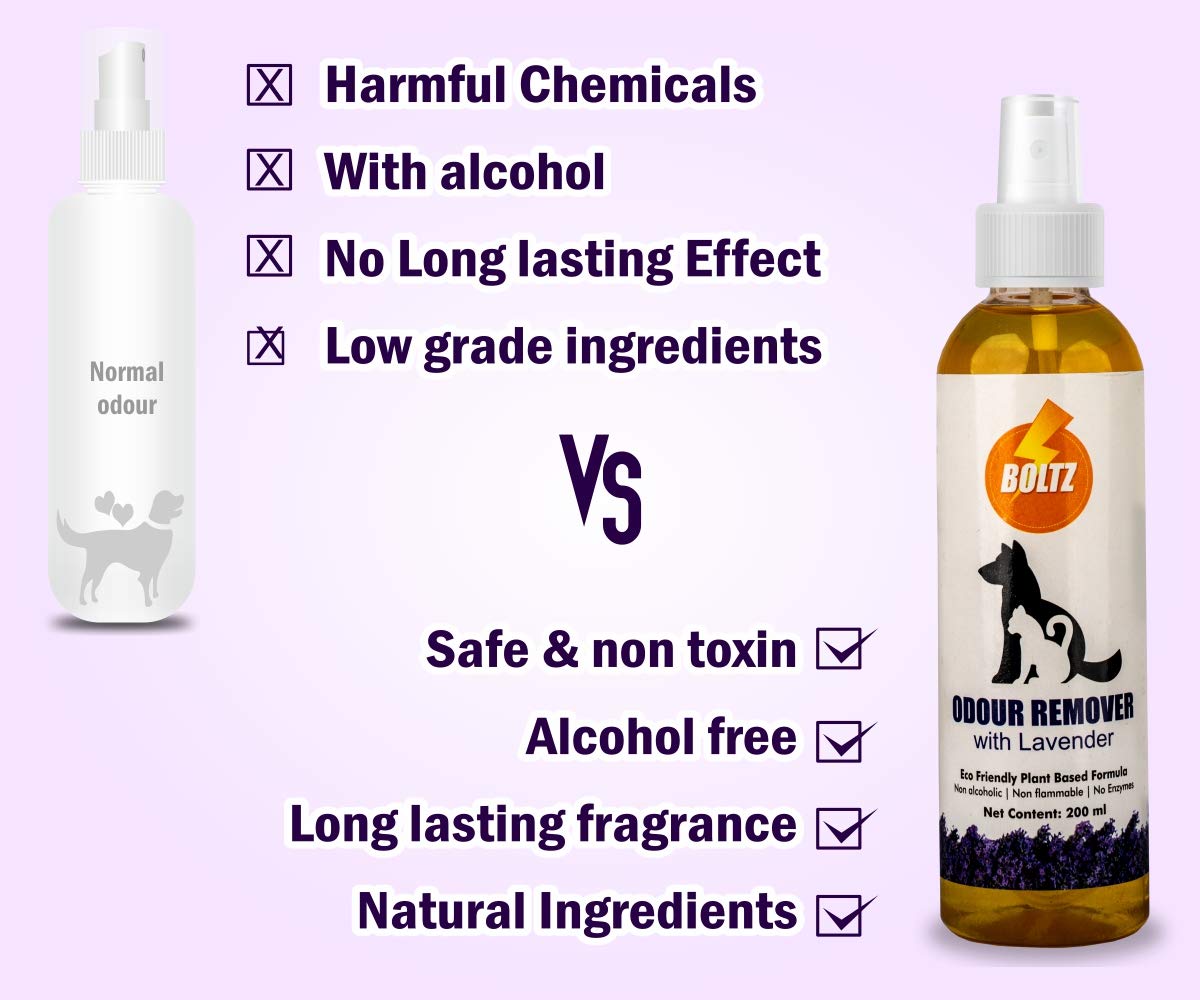 Boltz Odour and Urine Smell Remover Pet Area Freshener for Dog and Cat with Lavender Fragrance (200 ml), 1 Piece