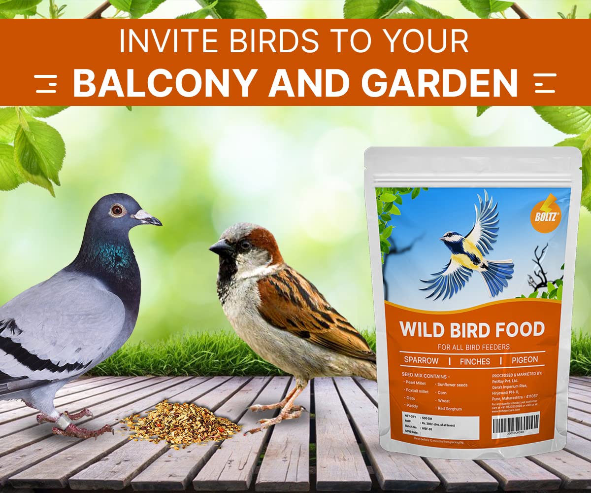 Boltz Premium Wild Bird Food – 500g | Seed Mix for Sparrow, Finch, Pigeon & Other Birds | Natural, Protein-Rich Bird Feed | Balanced Daily Nutrition | Ideal for Feeders & Outdoor Birds