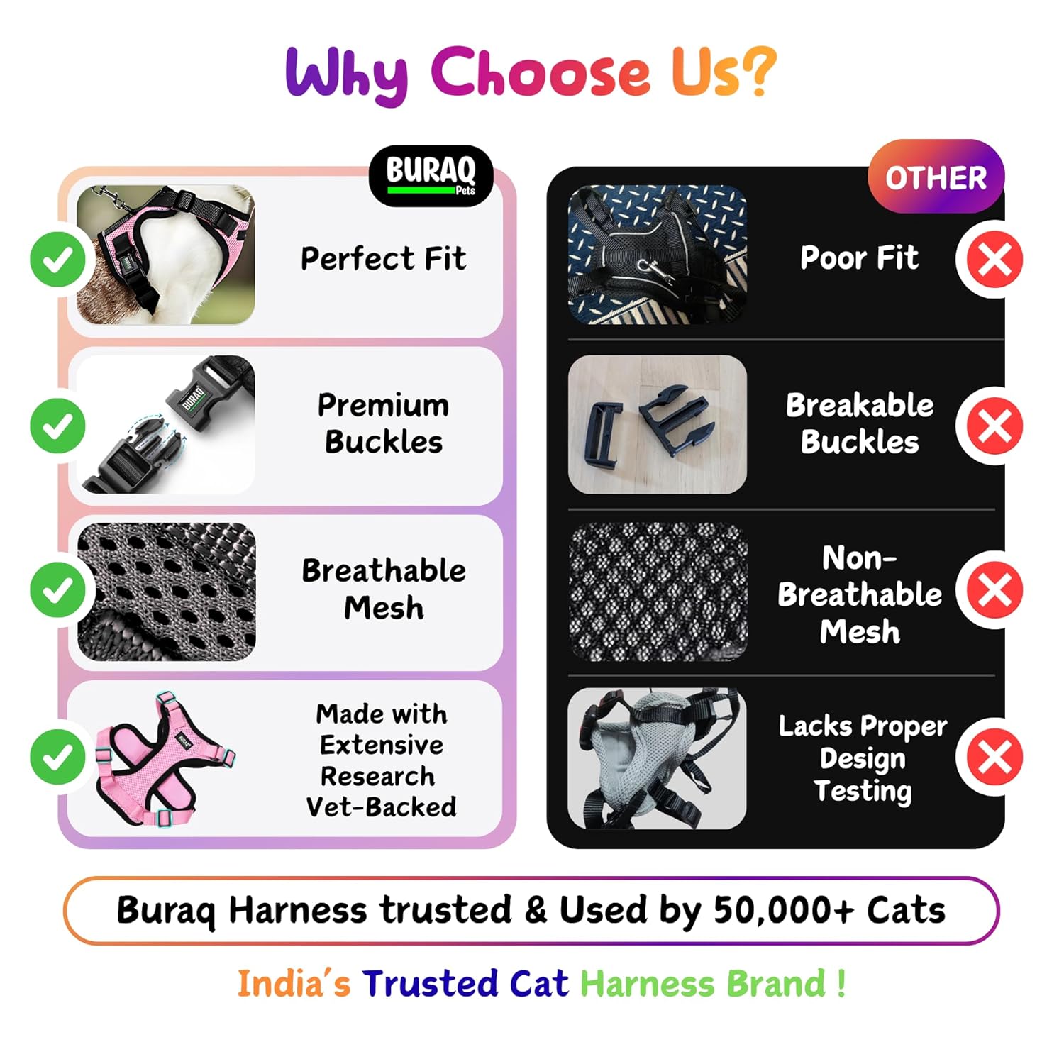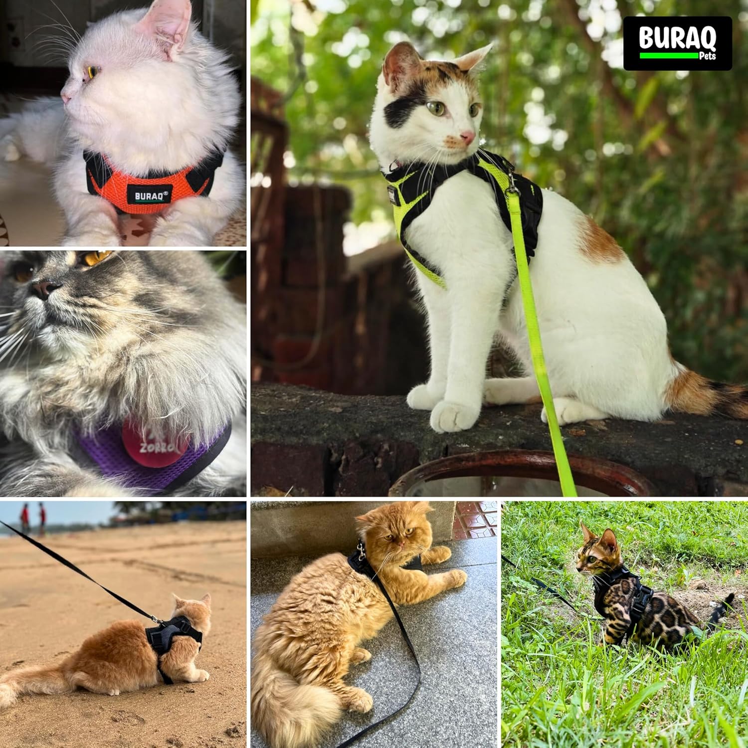 Buraq No Pull Cat Harness with Leash, Escape Proof, Ultra-Light Weight, Air Mesh Fabric, Aesthetic Design Adjustable Cat Leash with Harness (S – Grey)