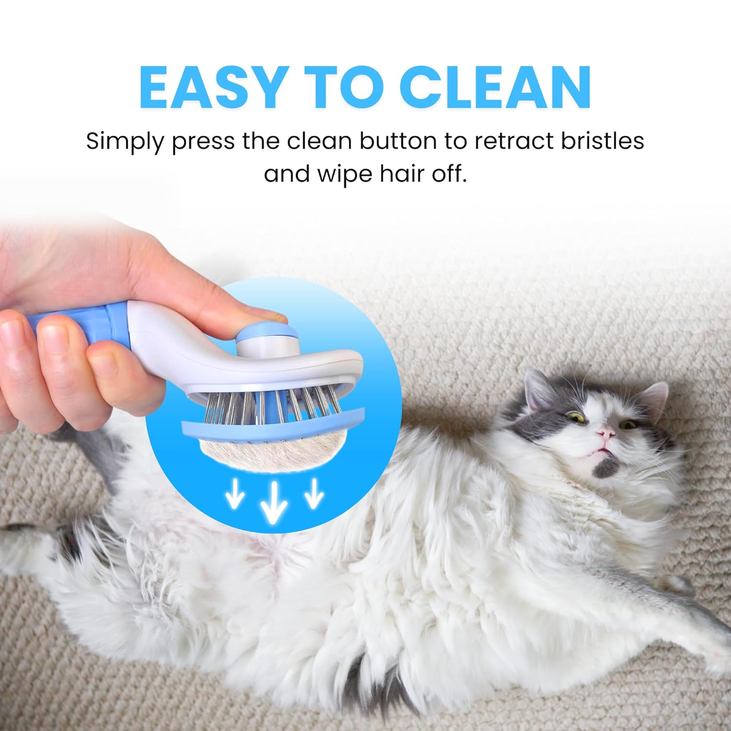Super Easy to Use & Clean – With a single push of the self-cleaning button, the bristles retract instantly, allowing you to wipe away collected hair in seconds. This pet grooming brush is not only user friendly but also fully washable, ensuring long lasting hygiene. Ideal for quick and efficient dog and cat hair removal after every grooming session.