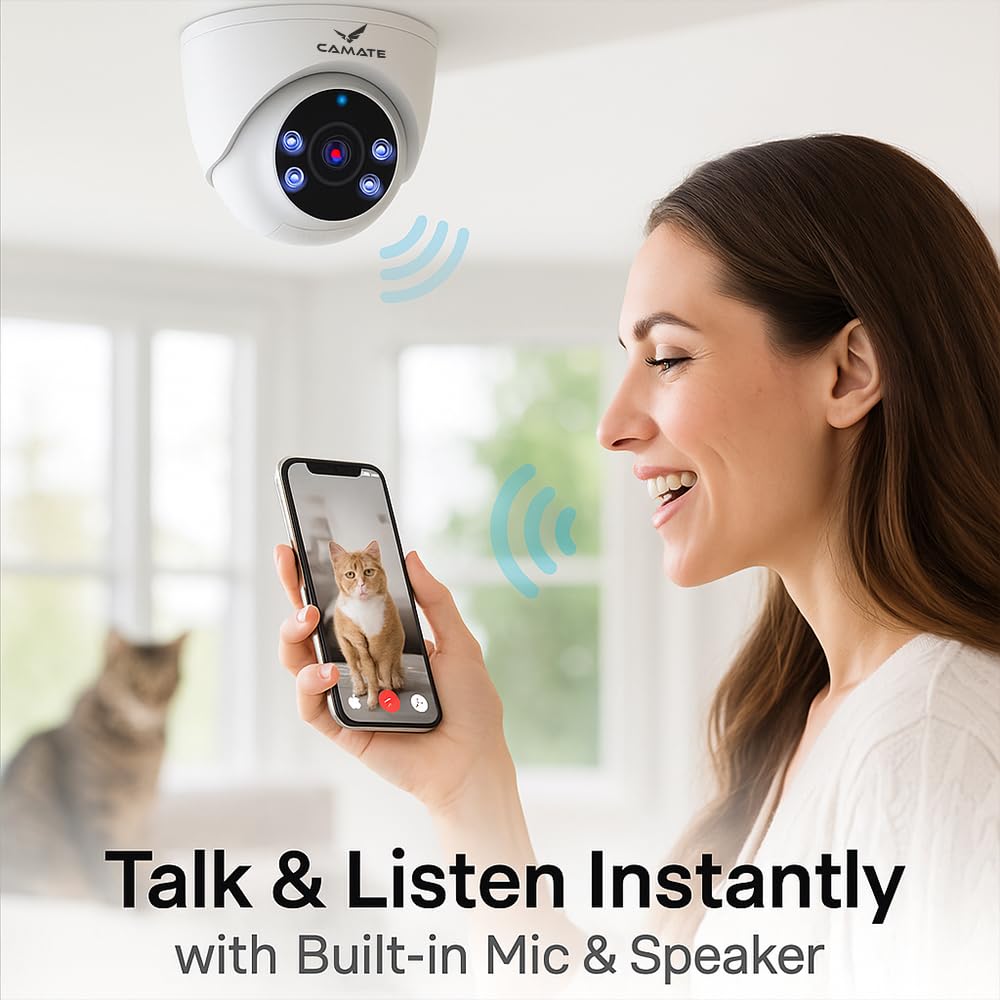 Camate Curve 3MP (5GHz/2.4GHz Dual Band WiFi) Dome CCTV Camera | Wireless Indoor Security Camera with WiFi, Two-Way Audio, Full Color Night Vision, Motion Detection, Supports 256GB SD Card