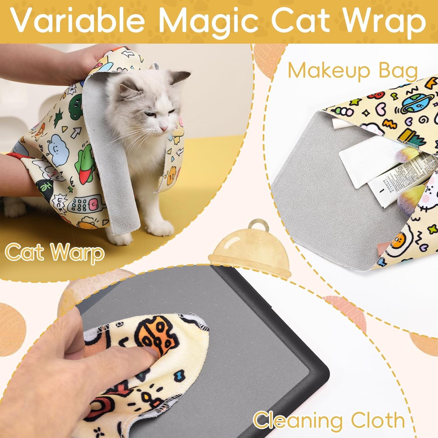 Cat Bag For Bathing And Nail Trimming, 55x55cm Doodle Print Cat Basket With Adjustable Straps, Secure Pet Grooming Accessories For Stress-Free Care Secure Cat Bag: Designed for safe cat bathing and nail trimming; The durable cat basket features adjustable straps to keep your pet secure during grooming sessions; Suitable for pet owners looking for reliable cat accessories Breathable Mesh Design: Made from premium material; Ensures proper air circulation and quick drying; The cat bag provides comfort while during nail clipping or bathing Adjustable Straps: Features multiple drawstrings for custom fit; Allows controlled access to paws for nail care; The cat basket design helps reduce pet stress during grooming procedures Spacious Interior: Measures 55x55cm for comfortable pet movement; Roomy cat bag accommodates cats of various sizes; The wide opening makes it convenient to place your pet inside the grooming accessories Multi-Functional Use: Suitablefor bathing, nail trimming, and medical procedures; The versatile cat basket serves as essential pet care tool; Helps create positive grooming experience for both pets and owners