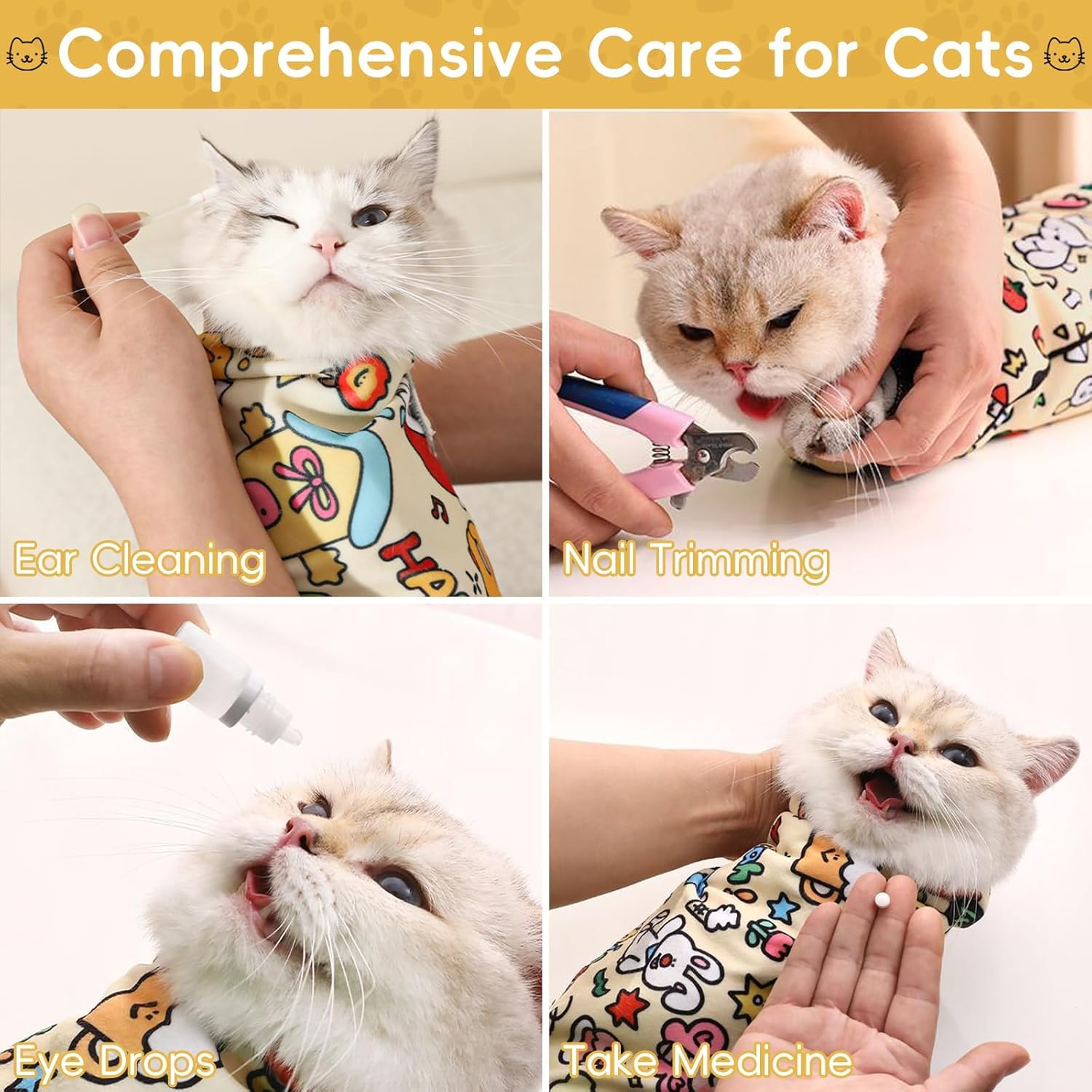 Secure Cat Bag: Designed for safe cat bathing and nail trimming; The durable cat basket features adjustable straps to keep your pet secure during grooming sessions; Suitable for pet owners looking for reliable cat accessories