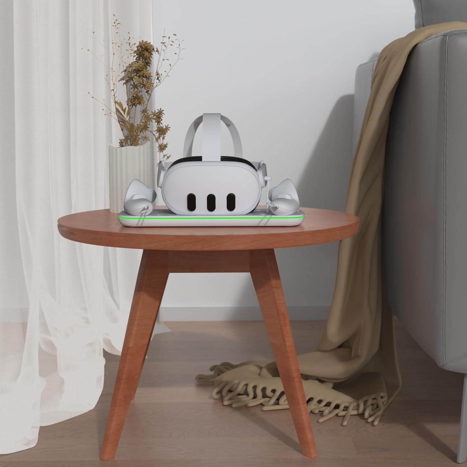 Magnetic Charging Design – Upgrade your charging experience with our magnetic charging dock, compatible with Meta Quest 3 and Meta Quest 3S headsets and touch controllers. The magnetic design guarantees effortless placement and reliable charging. Simply place your headset and controllers on the dock and enjoy built-in overheating protection for safe and efficient charging