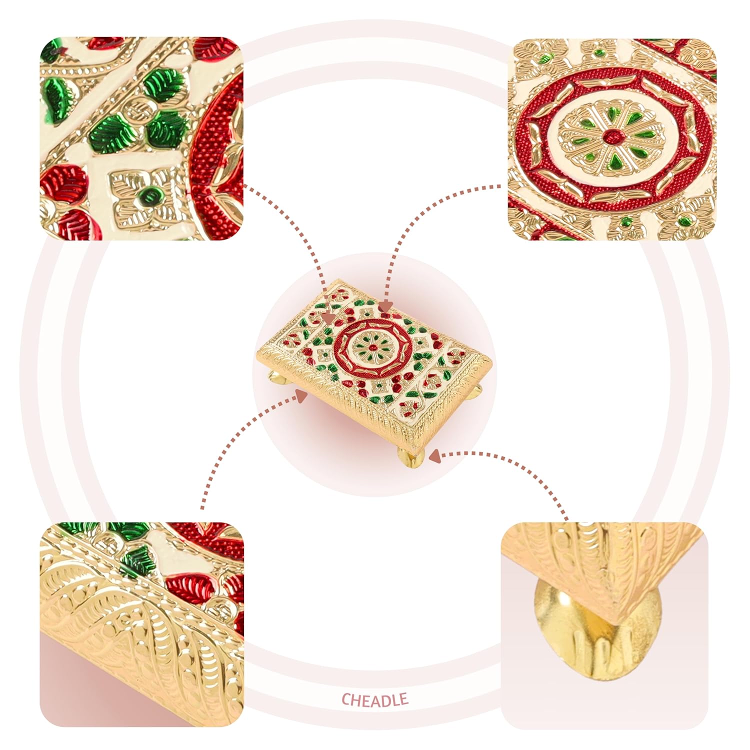 CHEADLE Handcrafted Multicolor Wooden Pooja Chowki – Traditional Decor for Home Temple & Puja Rituals (Multicolor, Pooja.chowki-4X6)