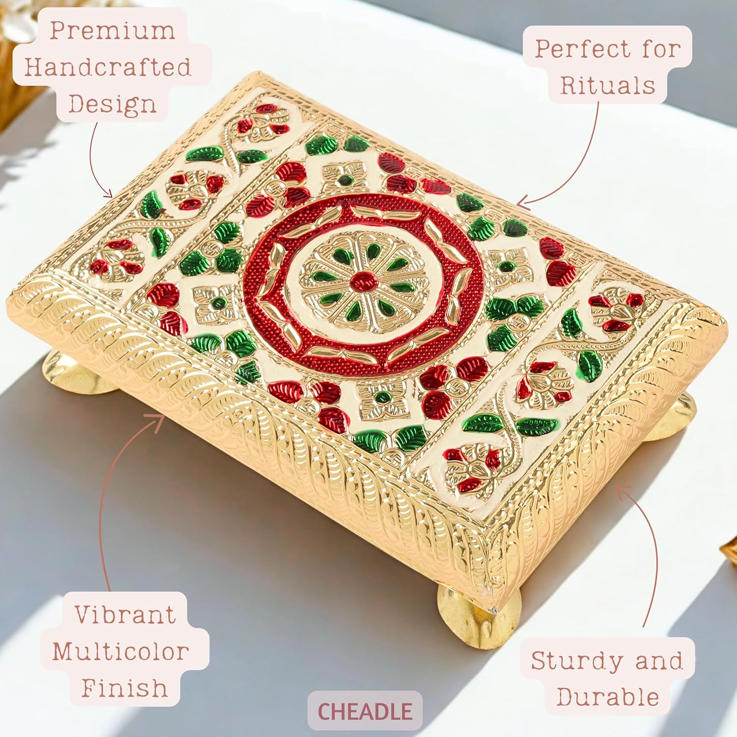 Be the first to review “CHEADLE Handcrafted Multicolor Wooden Pooja Chowki – Traditional Decor for Home Temple & Puja Rituals (Multicolor, Pooja.chowki-4X6)”