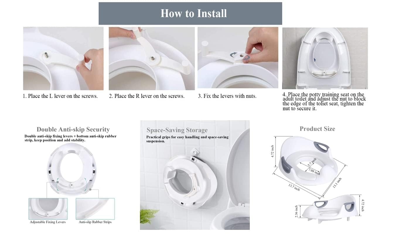 Made of non-slip material – The bottom of the training sear is provided with four-point anti-slip strip, which is stable without shifting, make your kids safe and be confidence when they are in bathroom.