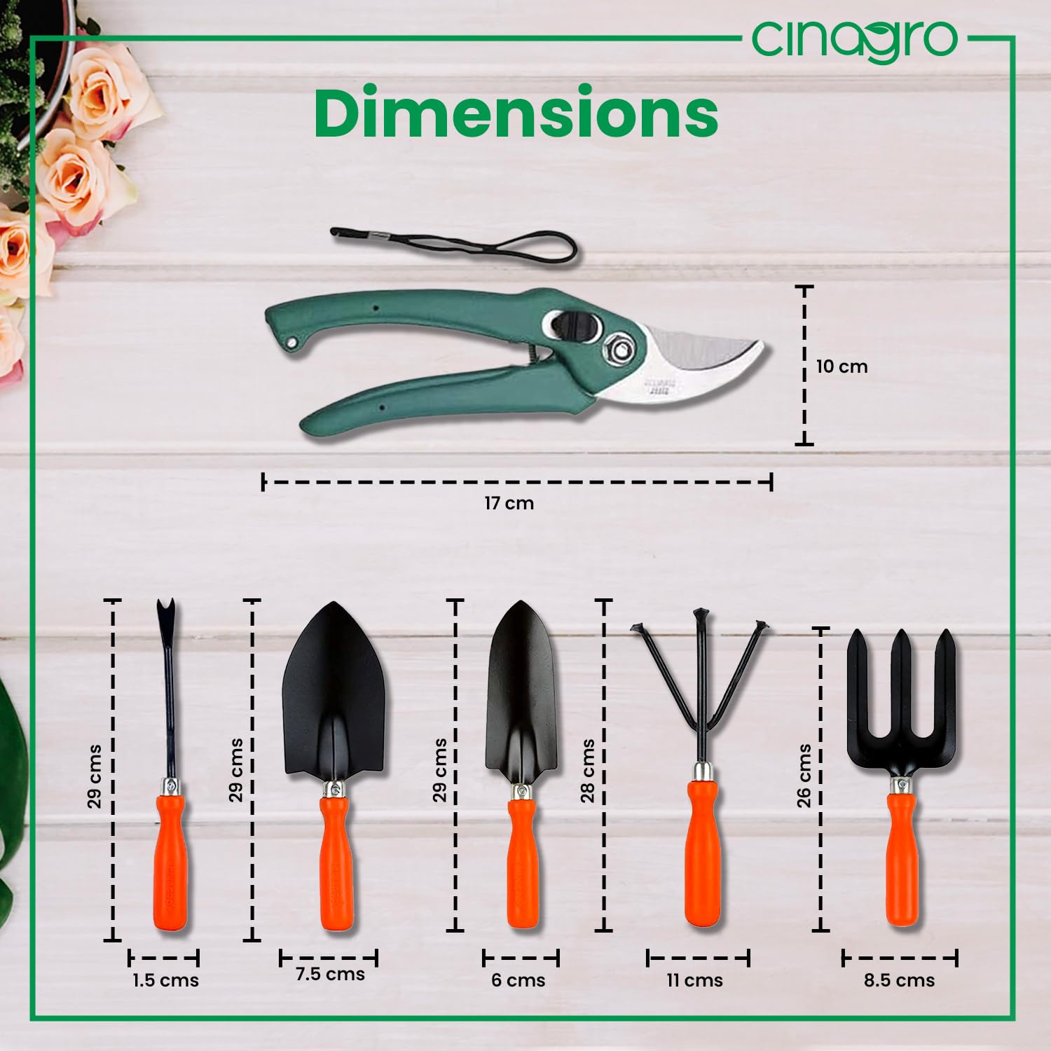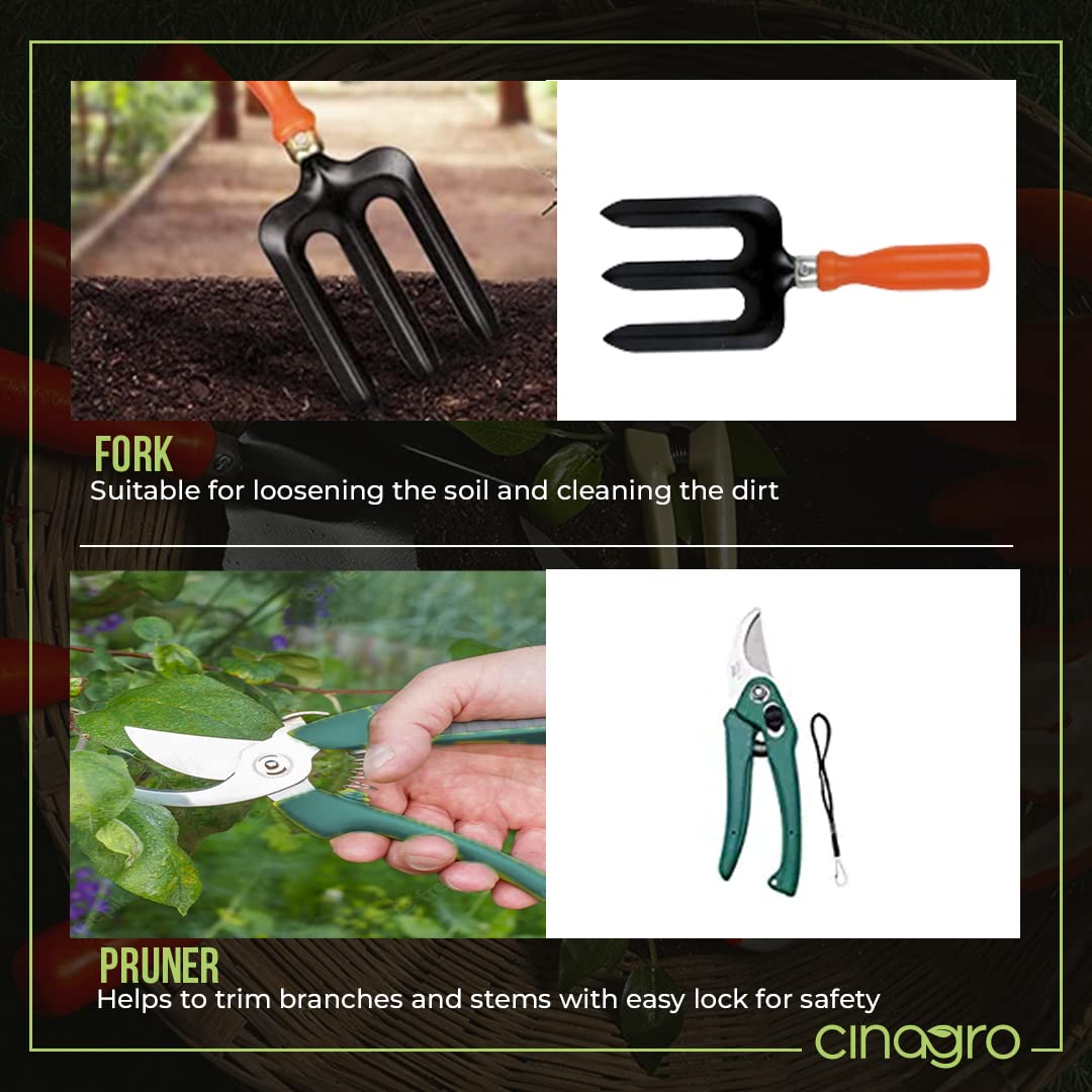 Cinagro Garden Tools Kit (Set of 6) Weeder, 2 Trowels, Hand Fork, Cultivator, Pruner | Gardening Tools Kit for Home Garden, Indoor and Outdoor Gardening for Plants and Soil