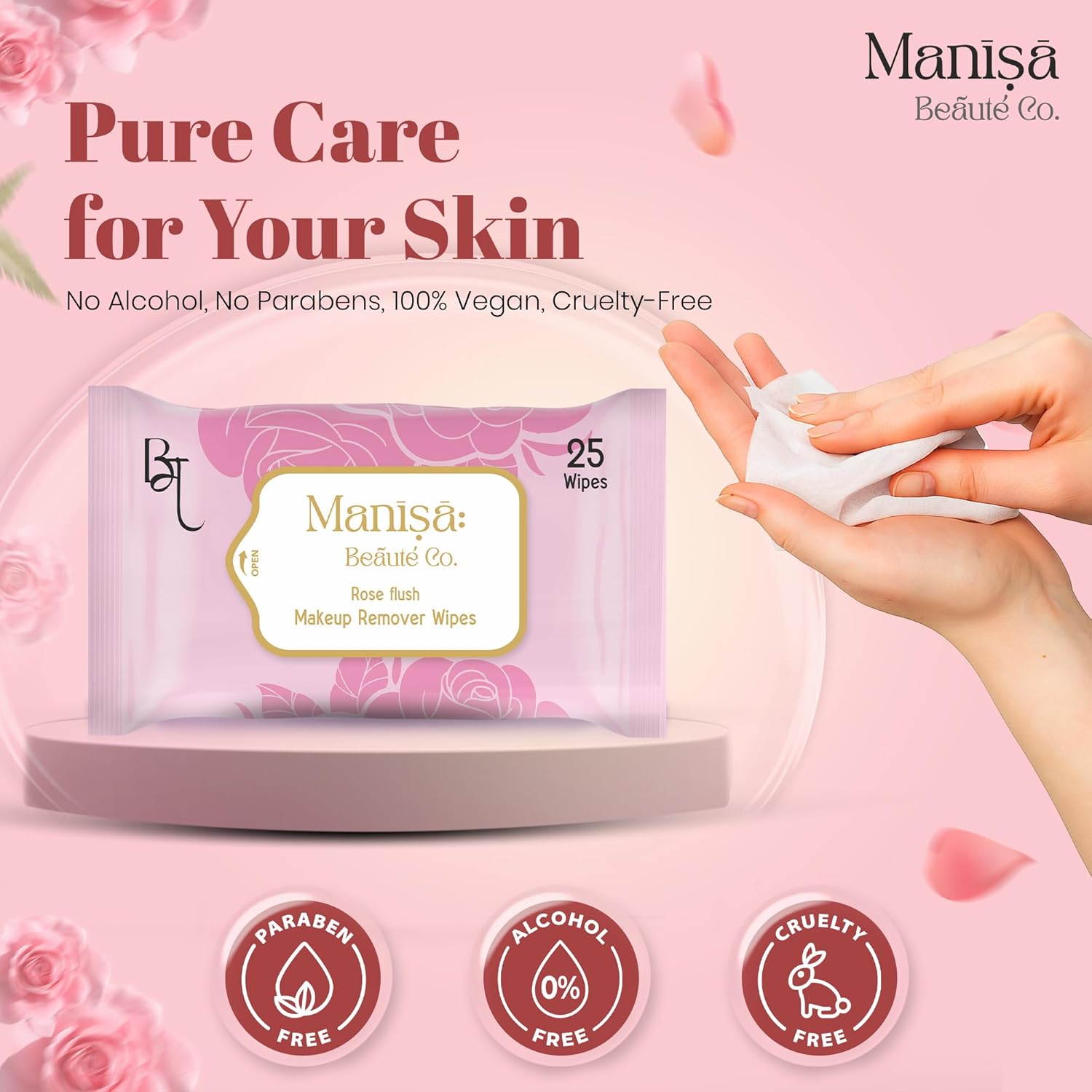 Co. Rose Flush Makeup Remover Wipes | Alcohol-Free, Paraben-Free, Vegan & Cruelty-Free | Rose-Infused Makeup Removing Wipes | 100 Wipes (Pack of 4)