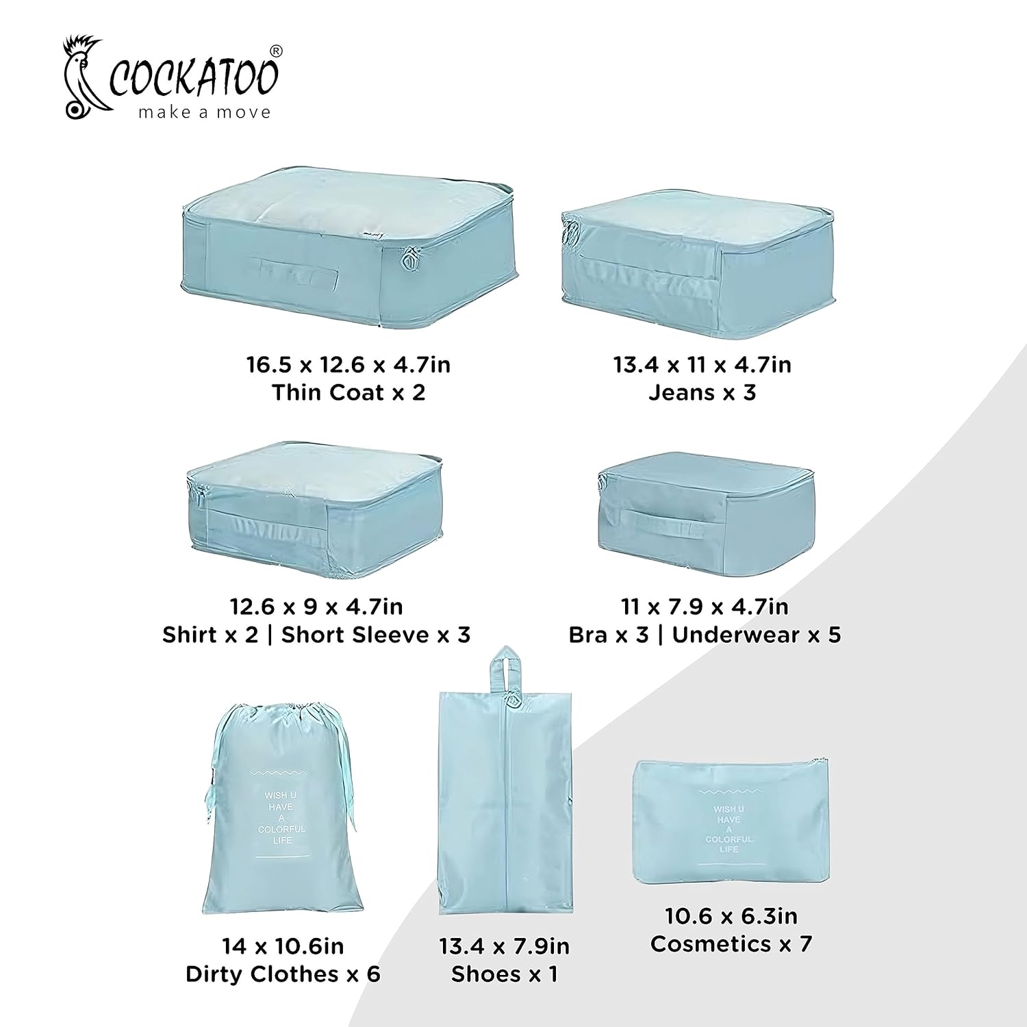 Cockatoo Jet-Set 7 Pc Travel Storage Bag,Travel Organizer Bags for Luggage,Material: Twill Cloth