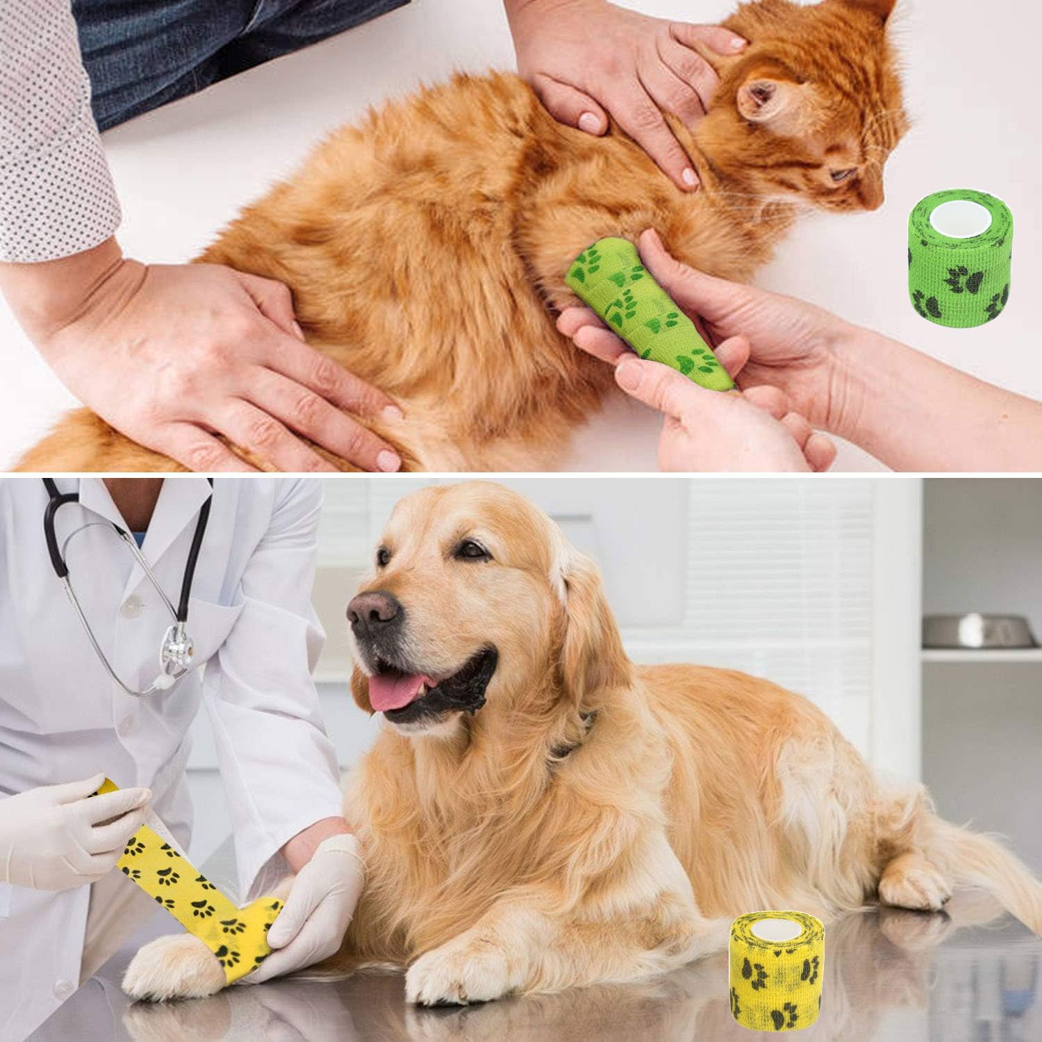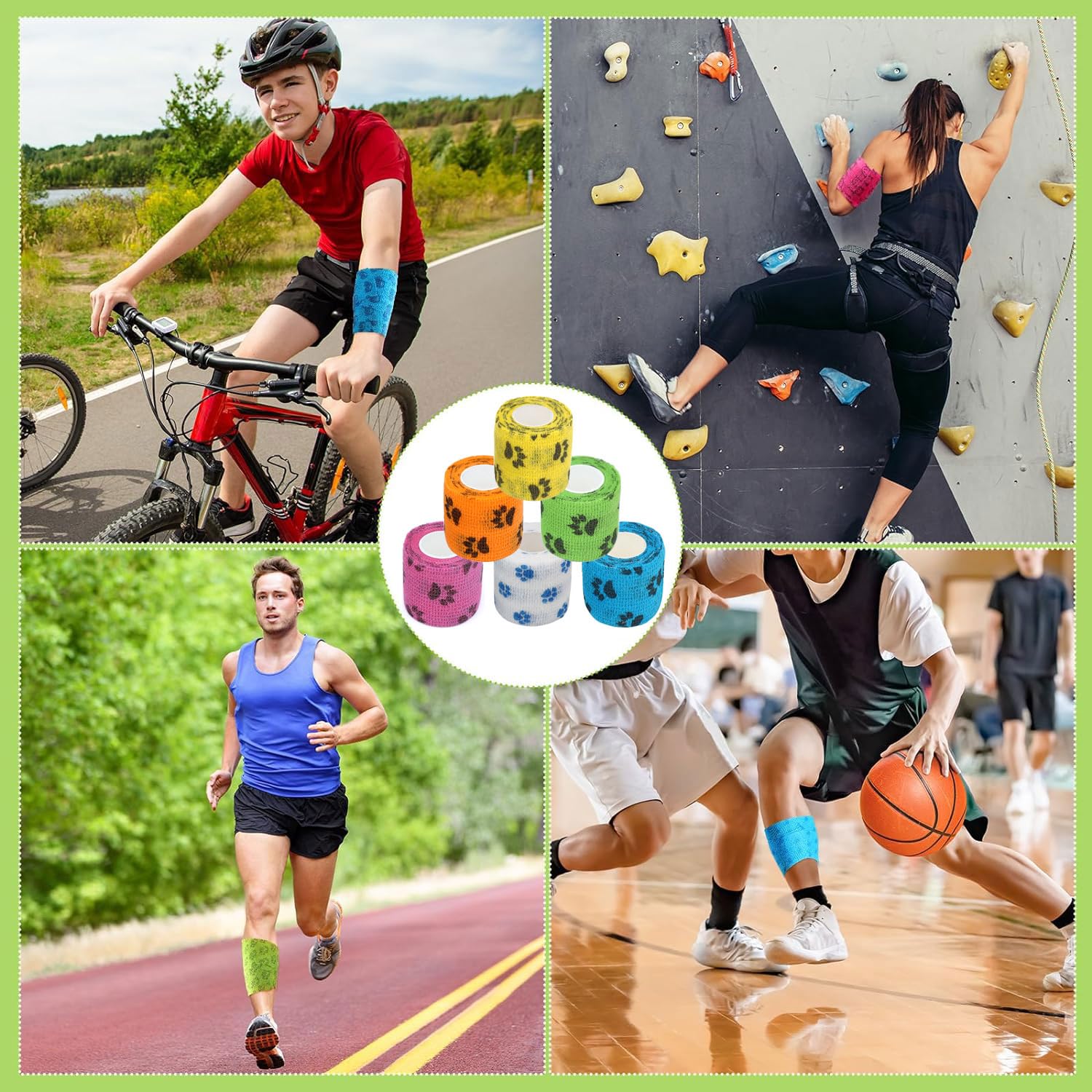 PET VET WRAP SELF ADJESIVE: When people or pets such as cats or dogs are injured, the self adherent cohesive bandage can be used to secure, compress and support. It works well for the athletes to wrap it around wrists, fingers and hands for stabilization. Sticky elastic bandage cohesive can also be used on tattoo grip sleeves, grips and bottles to prevent slipping.