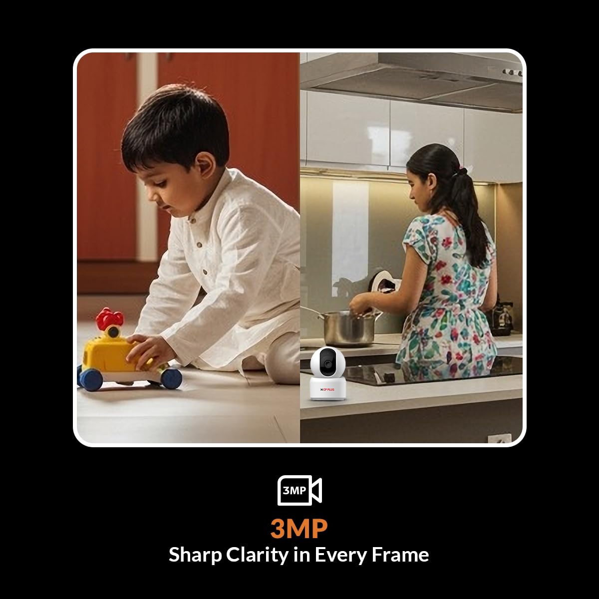 3MP Wi-Fi CCTV Camera with Full HD Clarity – This CP PLUS 3MP camera delivers high-definition (2304×1296) video using H.265 compression, making it the ideal indoor smart CCTV camera for homes, offices, and retail spaces.
