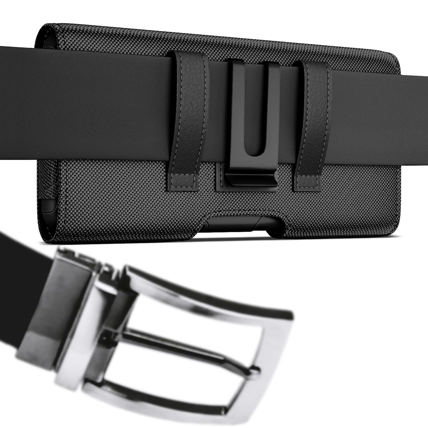 DeBin Case for iPhone 16 16Pro 15 15Pro 14 14 Pro 13 Pro 12 Pro 11 Xs X 10 XR, Nylon Cell Phone Belt Holder Holster with Belt Clip, Carrying Pouch Cover (Fits Phone with Protective Case on)