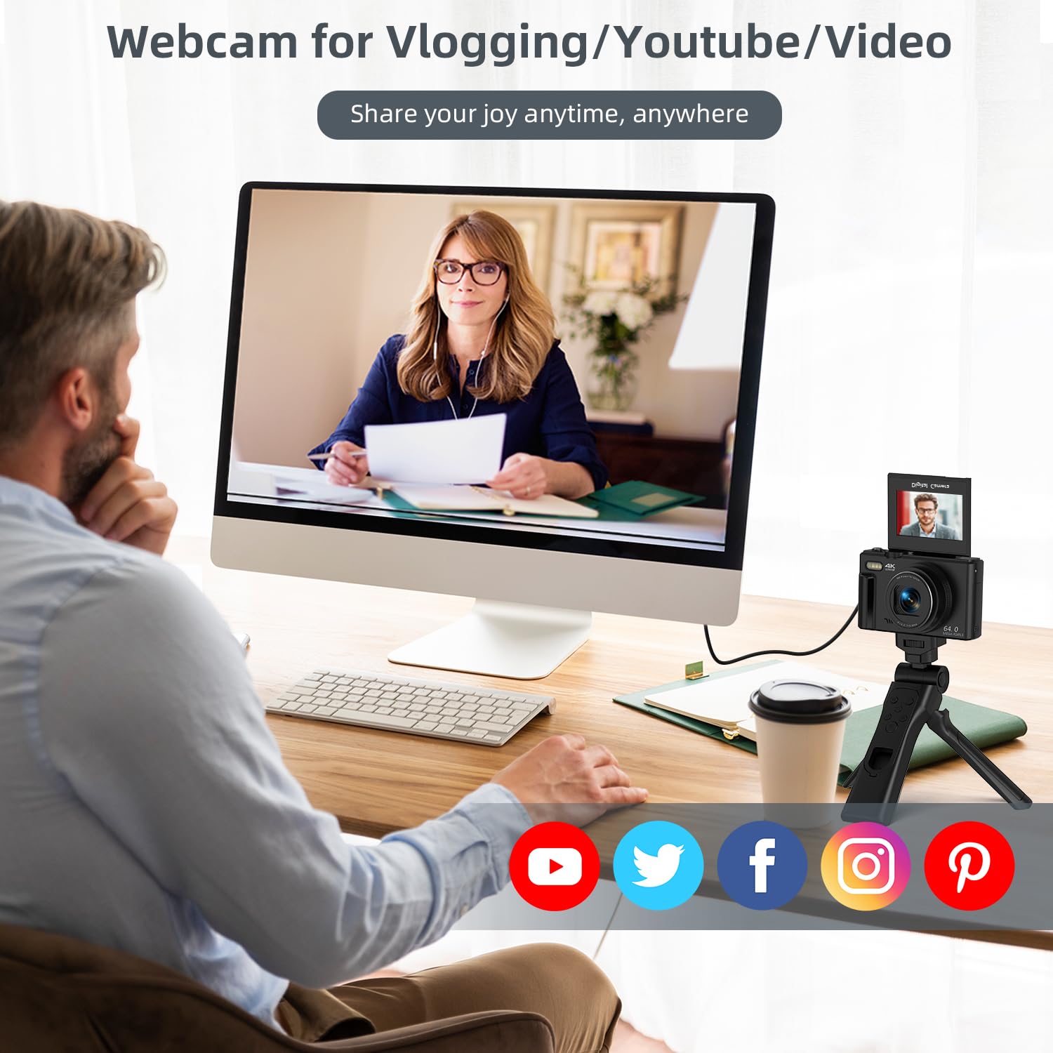 【64MP & AF】 This digital camera offers high-resolution images, perfect for beginners looking to capture clear and sharp photos. With autofocus technology, it simplifies the process of getting the perfect shot,Whether you’re capturing dynamic scenes or everyday moments, this camera makes photography easy, allowing you to focus on creativity without worrying about focus issues