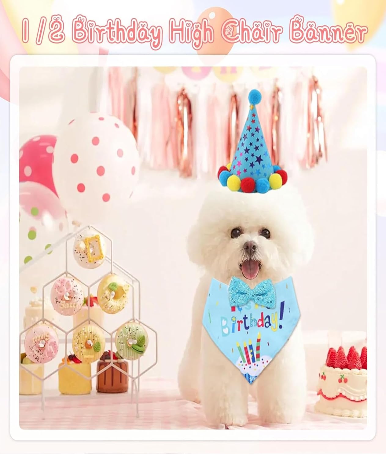 Complete Party Set: This dog birthday decorations set includes a stylish dog hat and matching bandana,perfect for creating festive atmospheres during birthday celebrations or adoption anniversaries; The vibrant colors enhance photo moments with your furry friend