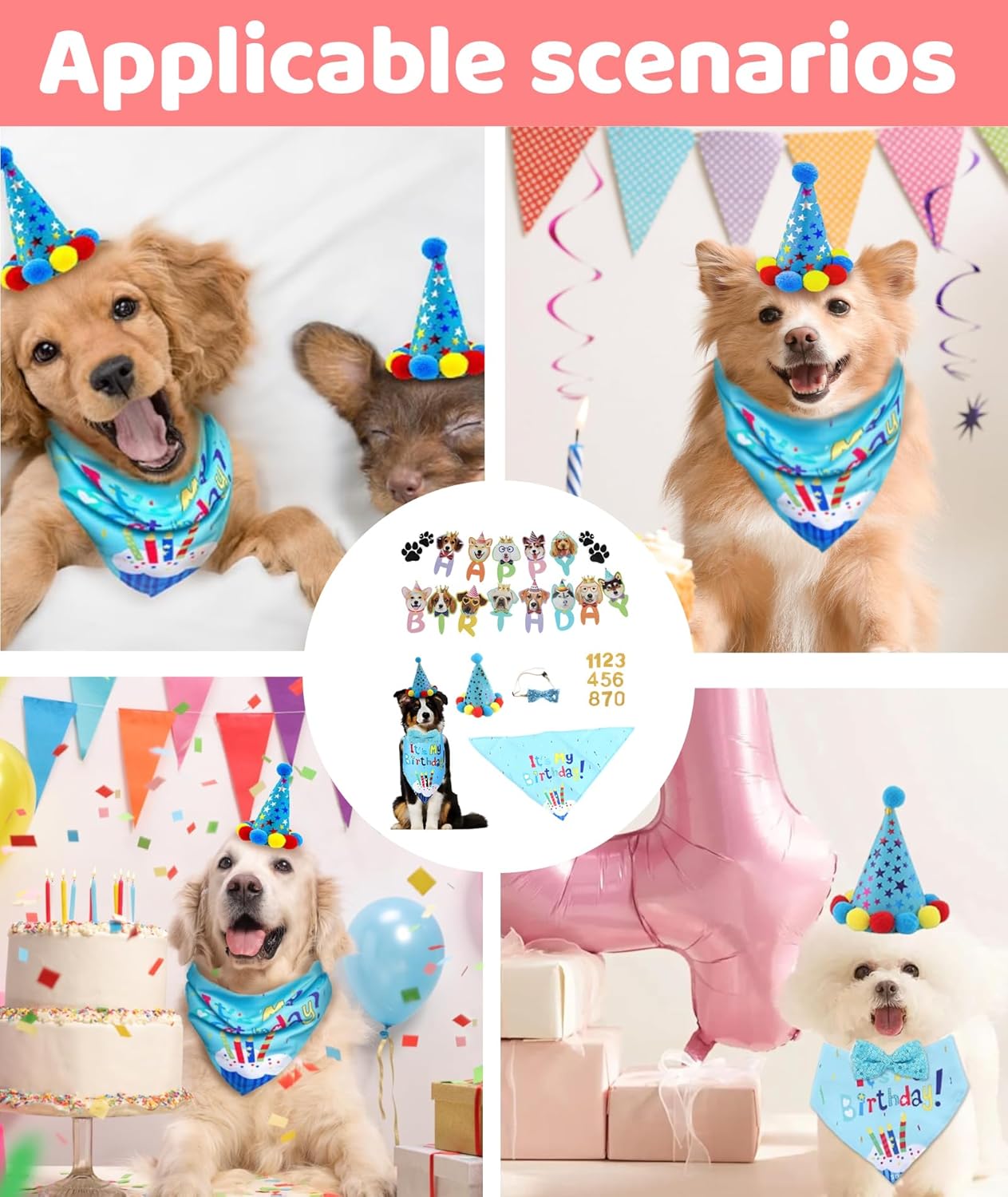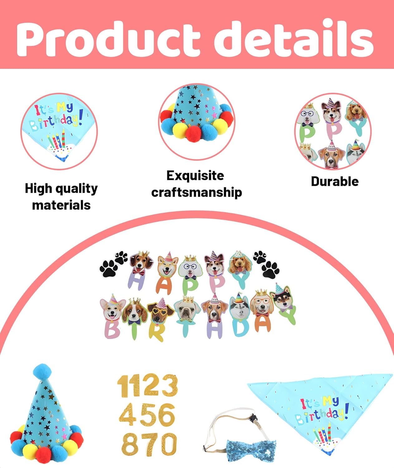 Thoughtful Gift:This dog birthday gift set makes an excellent present for pet lovers;The coordinated accessories help create joyful moments during special celebrations