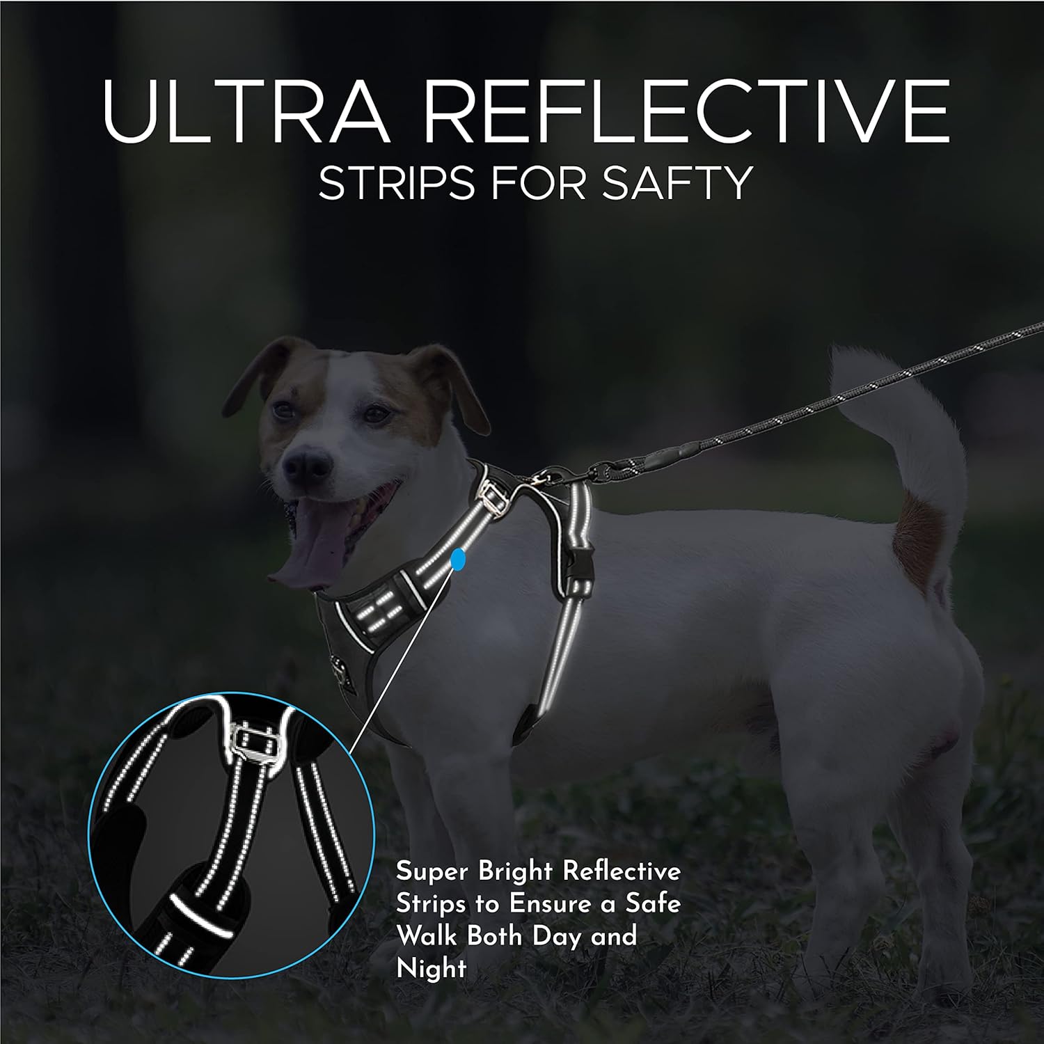 Dog Harness for Small Dogs – Reflective Strip Harness for Dogs Small, Medium, Large and Extra Large – Heavy Duty Anti Pulling Non Choking Dog Body Belt – Adjustable Black Dog Harness