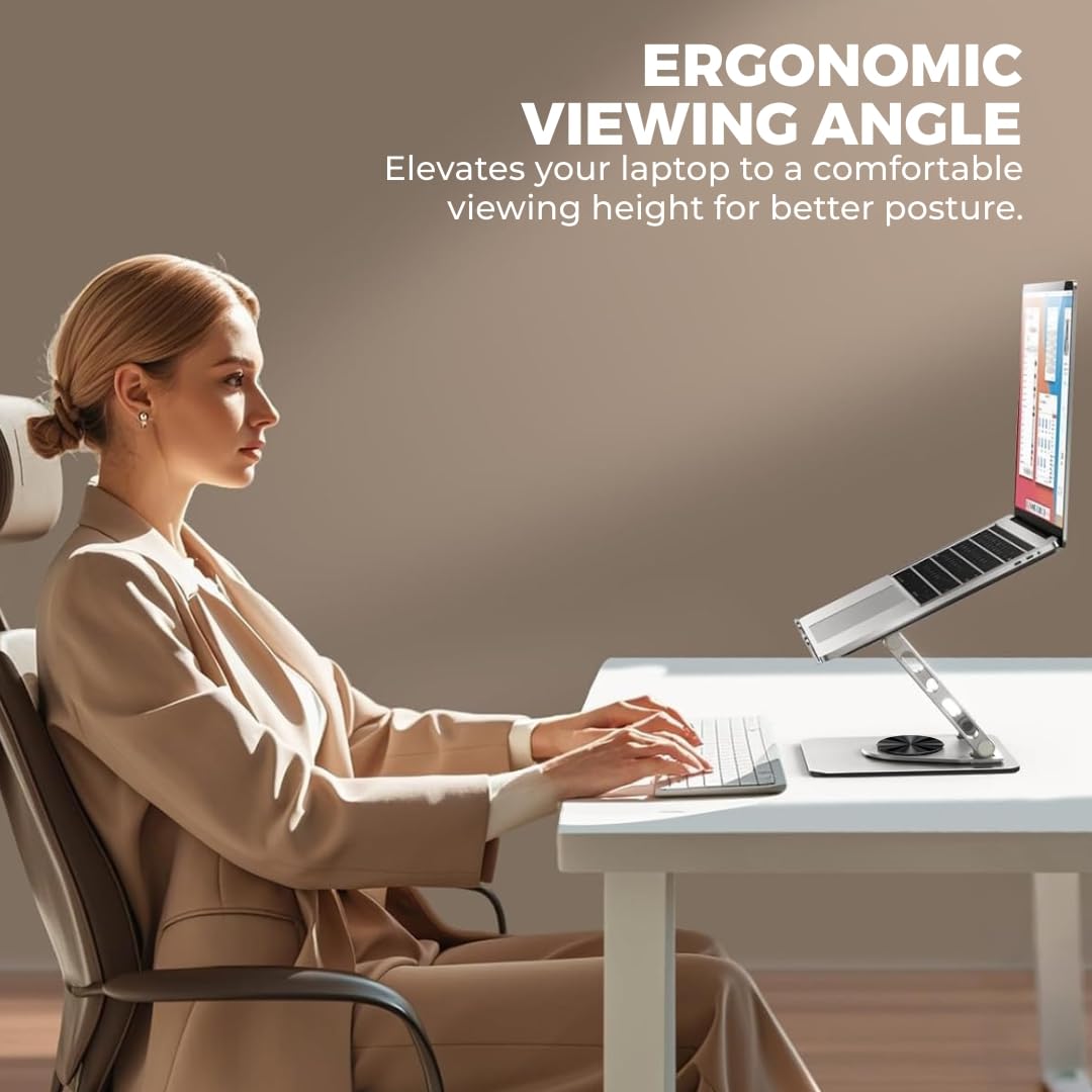 Dyazo Laptop Stand Foldable Height Angle Adjustable Laptop Riser for Desk Compatible for MacBook, Lenovo, Dell Notebook up to 15.6 Inches 360 Rotating Base (Silver)