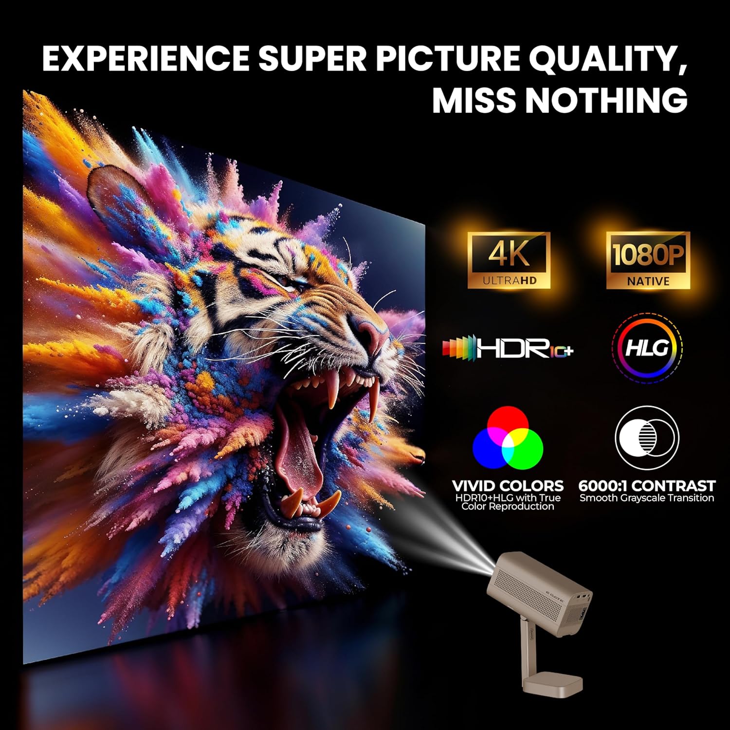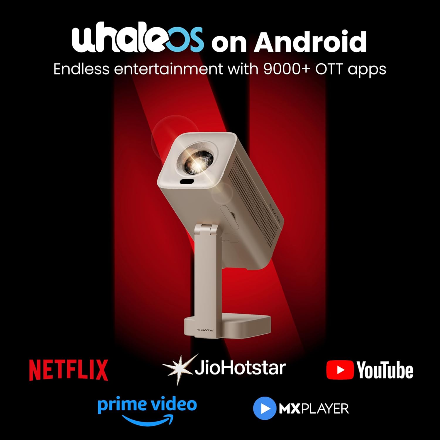 E GATE Atom 4X+ Fully Automatic Projector 4k Ultra HD | Whale TV+ Live TV on Android | Brightest 400 ISO | Native 1080p, Netflix, Prime | USB-HDMI ARC+CEC | HDR+HLG | WiFi 6, BT, FlexAngle, Egate Gold
