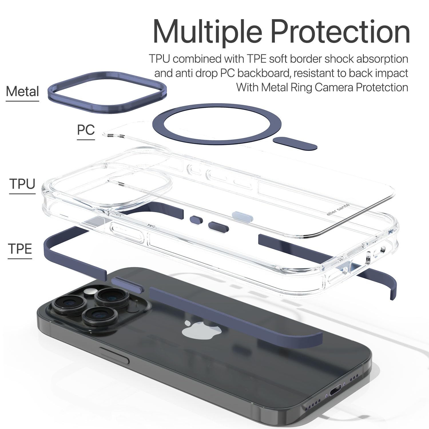 eller santé® Apex MagPro Back Cover Case for iPhone 15 Pro Shockproof Scratch Resistant Slim Thin Military-Grade Protection Support Mag-Safe Wireless Magnetic Charging – Blue