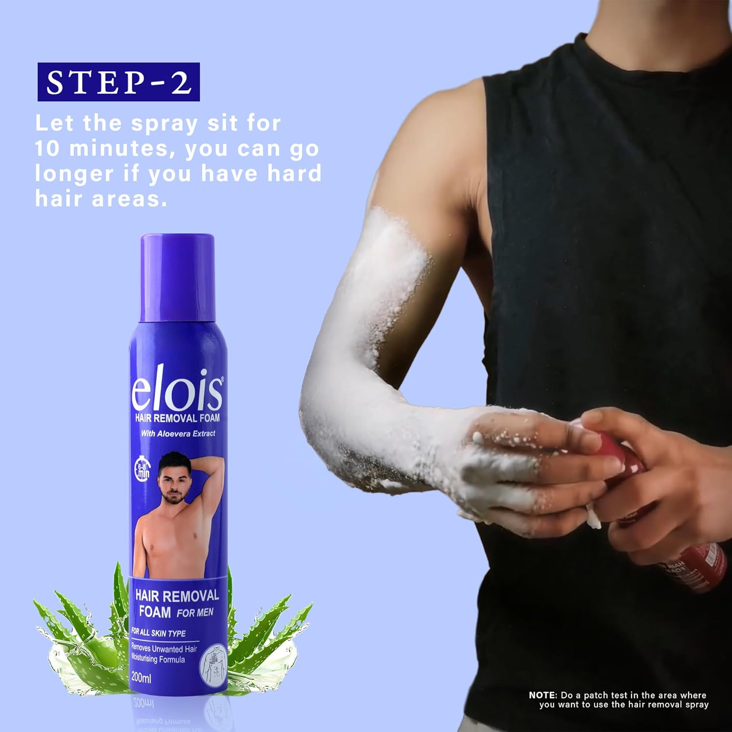 Elois Hair Removal Foam Spray For Men Painless Hair Removal For Arms Underarms & Legs – With Aloevera Extract Suitable For All Skin Type 200ml (Pack of 1, Aloe Vera)