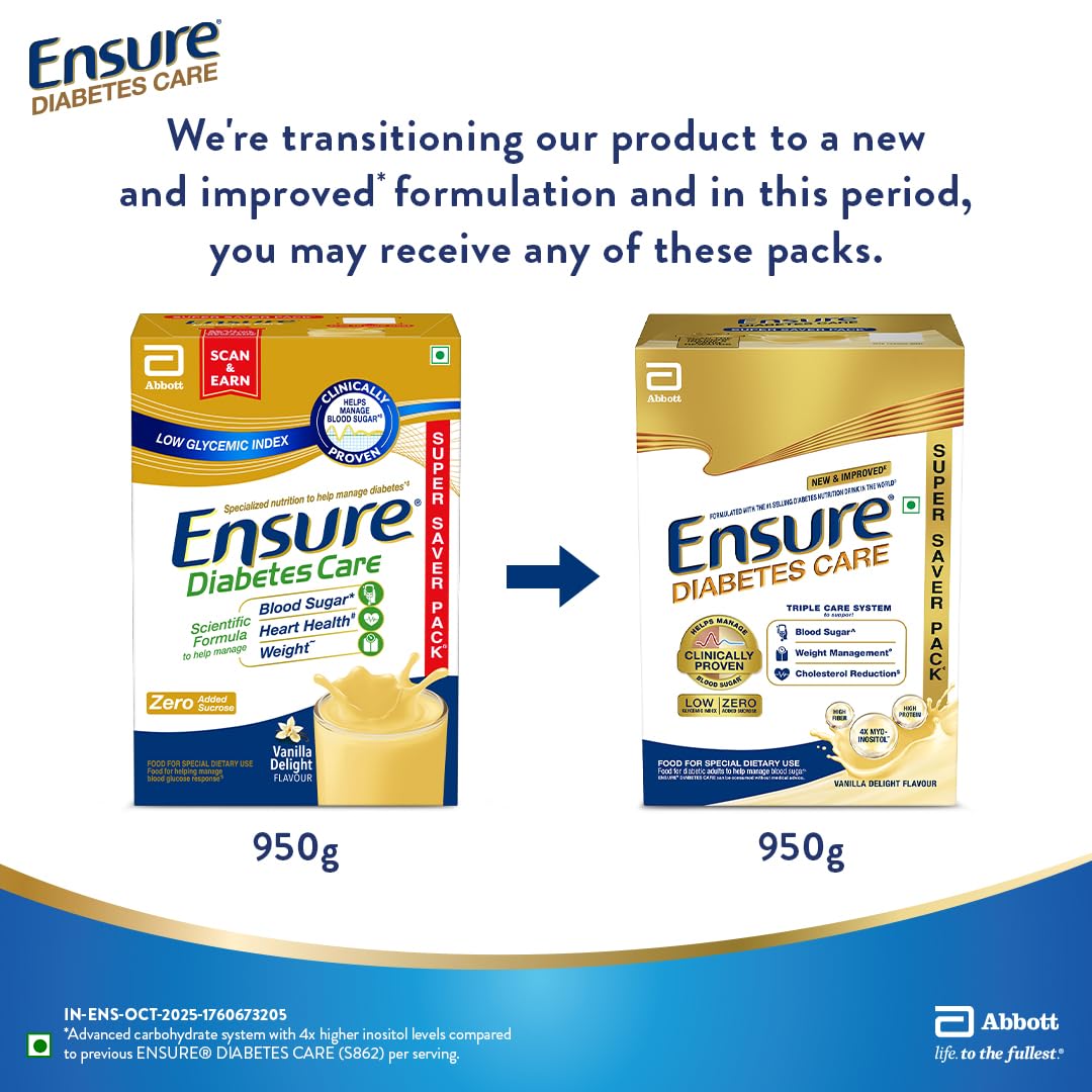 Ensure diabetes care is a diabetes specific nutrition. It is sugar (sucrose) free, has protein and balanced ratio of protein:carbs:fat along with micronutrients to support overall health. When included in diet as partial meal replacement either in breakfast, lunch or dinner, it can help to keep blood glucose and weight under control. It contains nutrients which help provide steady carbs build muscle mass heart health digestive health.