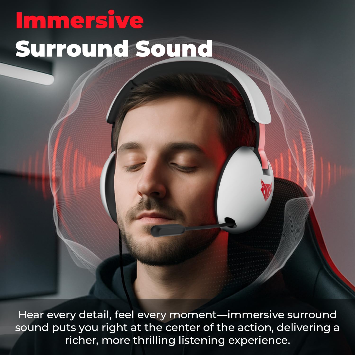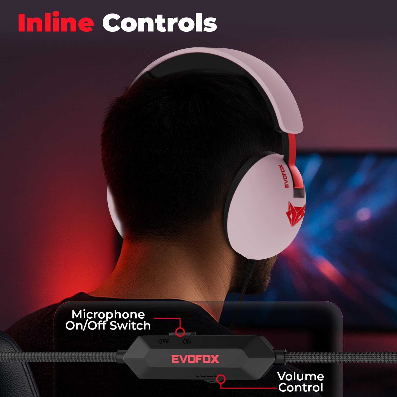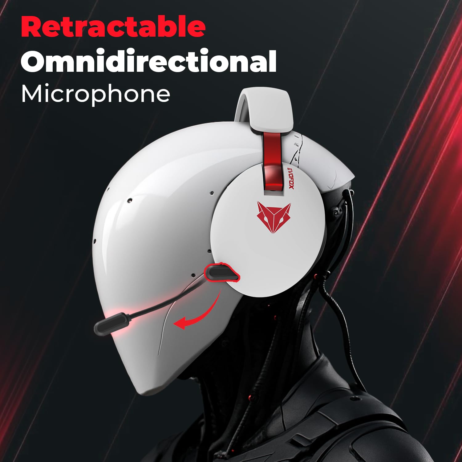 Evofox Hyperion Gaming Headphones with Mic – White, 50mm Drivers, Immersive Surround Sound, Retractable Mic, Wired (3.5mm + Type-C), Inline Controls, Durable Build with Over Ear Swappable Ear Pads