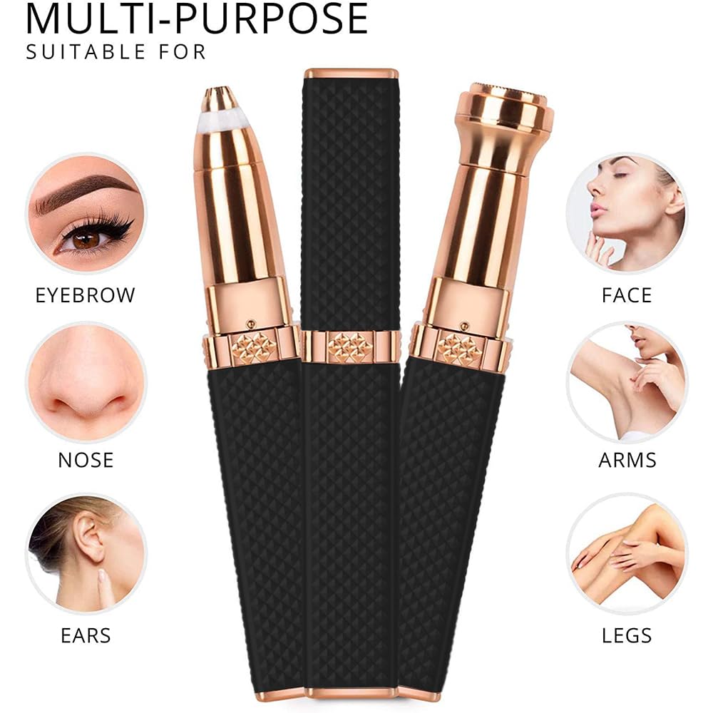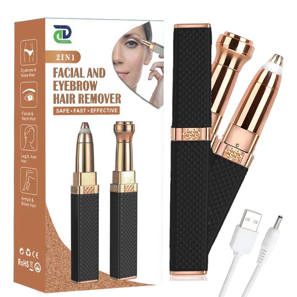 💖 2-in-1 Multifunction Design: Comes with two interchangeable heads — an eyebrow trimmer and facial hair remover, perfect for shaping eyebrows, removing peach fuzz, and cleaning upper lips, nose, and ear hair.