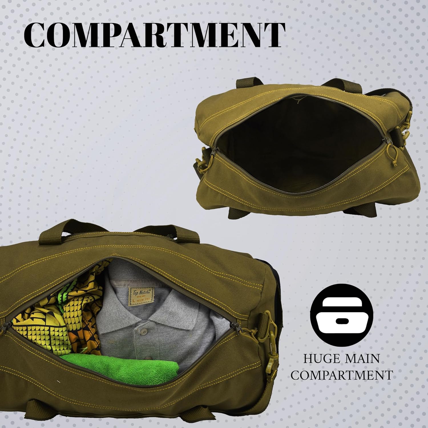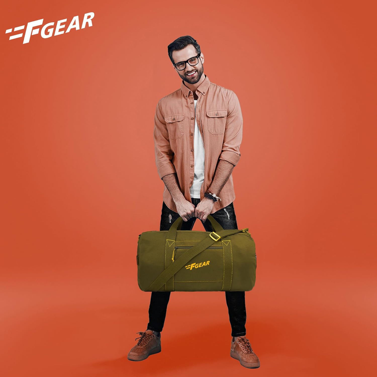 F Gear Sergeant Olive Canvas Medium Duffel 49L | Premium Canvas Fabric, 1 Spacious Compartment & 2 Pockets, Durable Travel Duffel, WaterResistant & Stylish, for Gym, College & Weekend Travel Bag