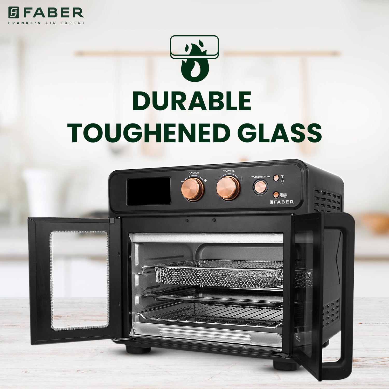 Capacity: Faber 25-liter air fryer oven is a versatile kitchen essential, perfect for baking, roasting, frying, and more. Its spacious design accommodates large meals, making it ideal for family cooking. With a sleek look and easy-to-use controls, it enhances both functionality and style in your kitchen.