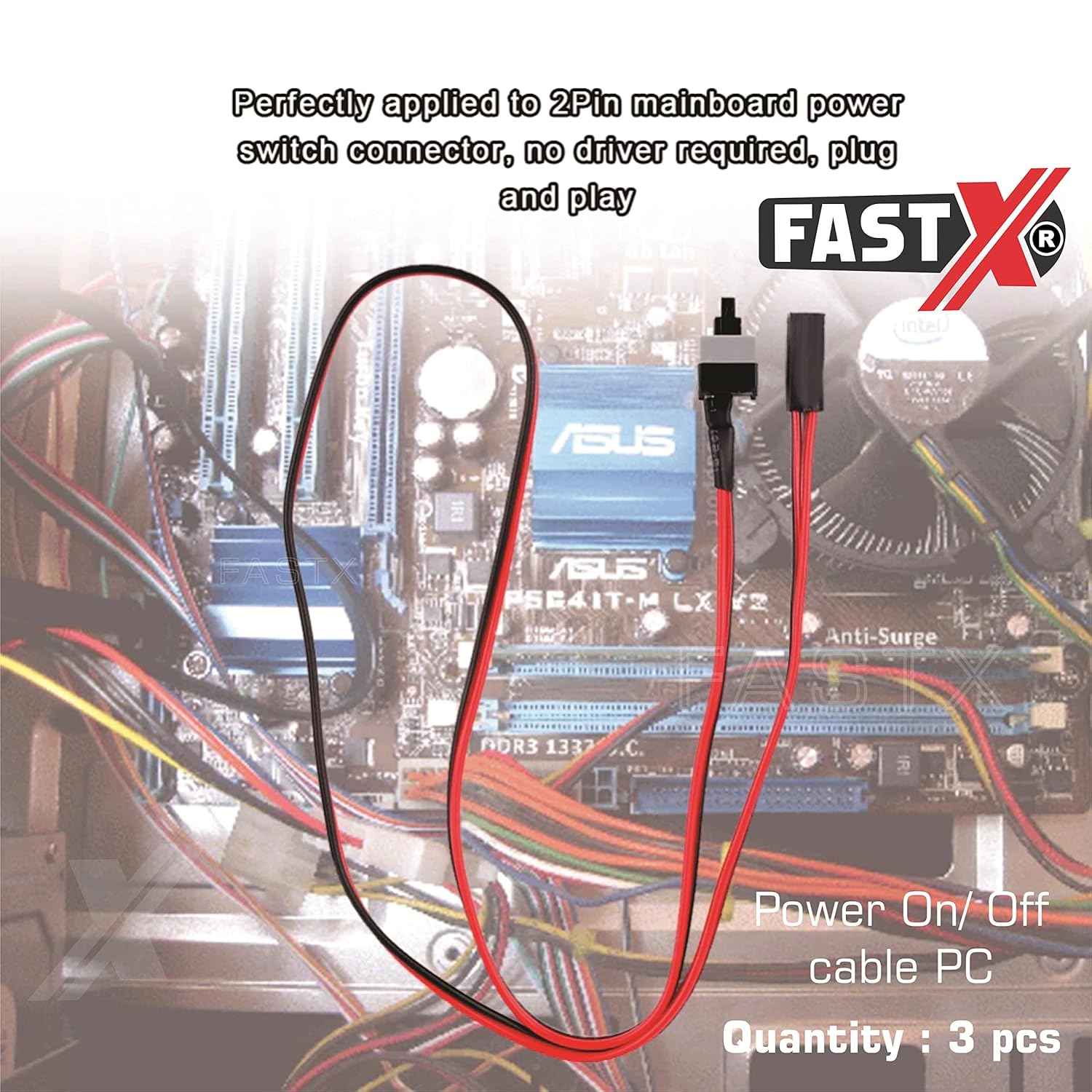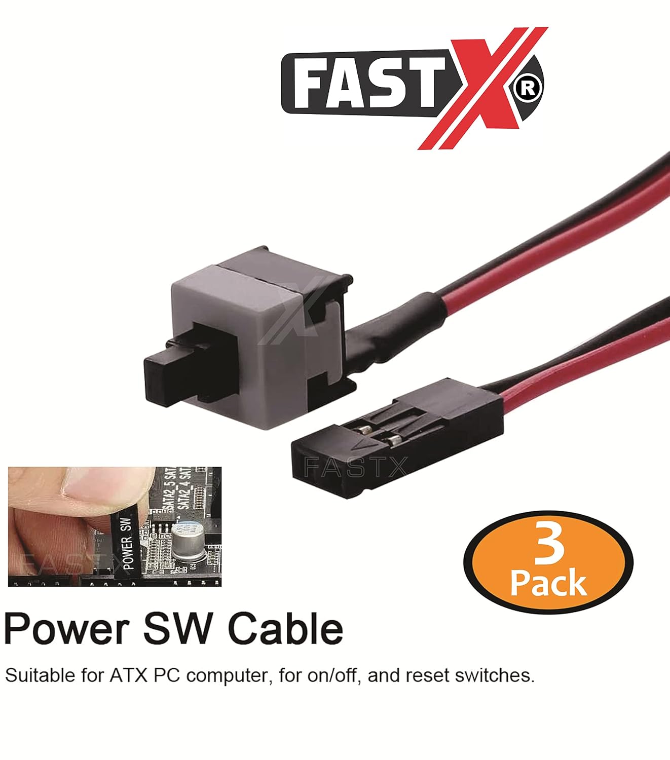 FASTX® 2 Pin SW PC Power Cable on/Off Push Button ATX Reset Desktop Computer Case Motherboard Switch jump start: Pack of 3 pc, Wire 48cm