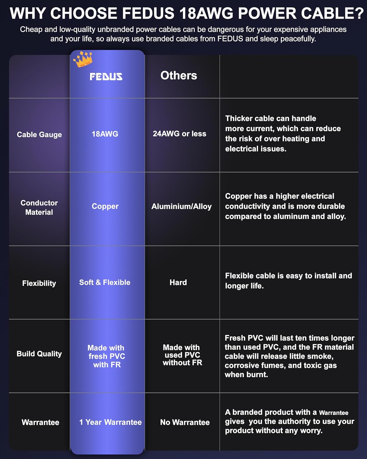 ▶ 18AWG PURE COPPER FOR UP TO 2500 WATTS: After strict electrical performance tests, bending tests, and high and low temperature tests by engineers, the reliability, professionalism, and safety of the design have been verified. Please use it with confidence. (18 AWG pure copper cable, 110V-250V/10A). Perfect choice for heavy-duty gaming desktops and regular use