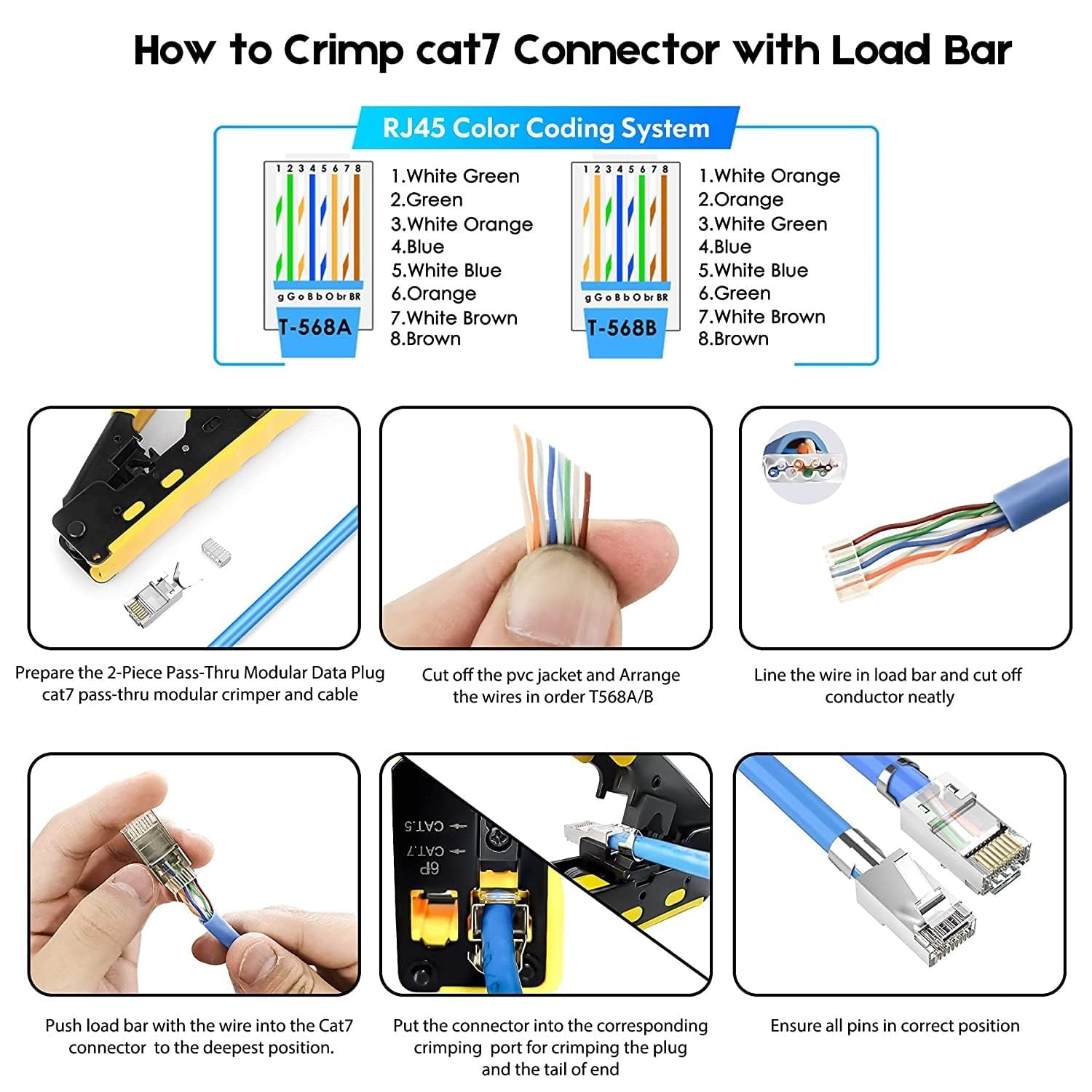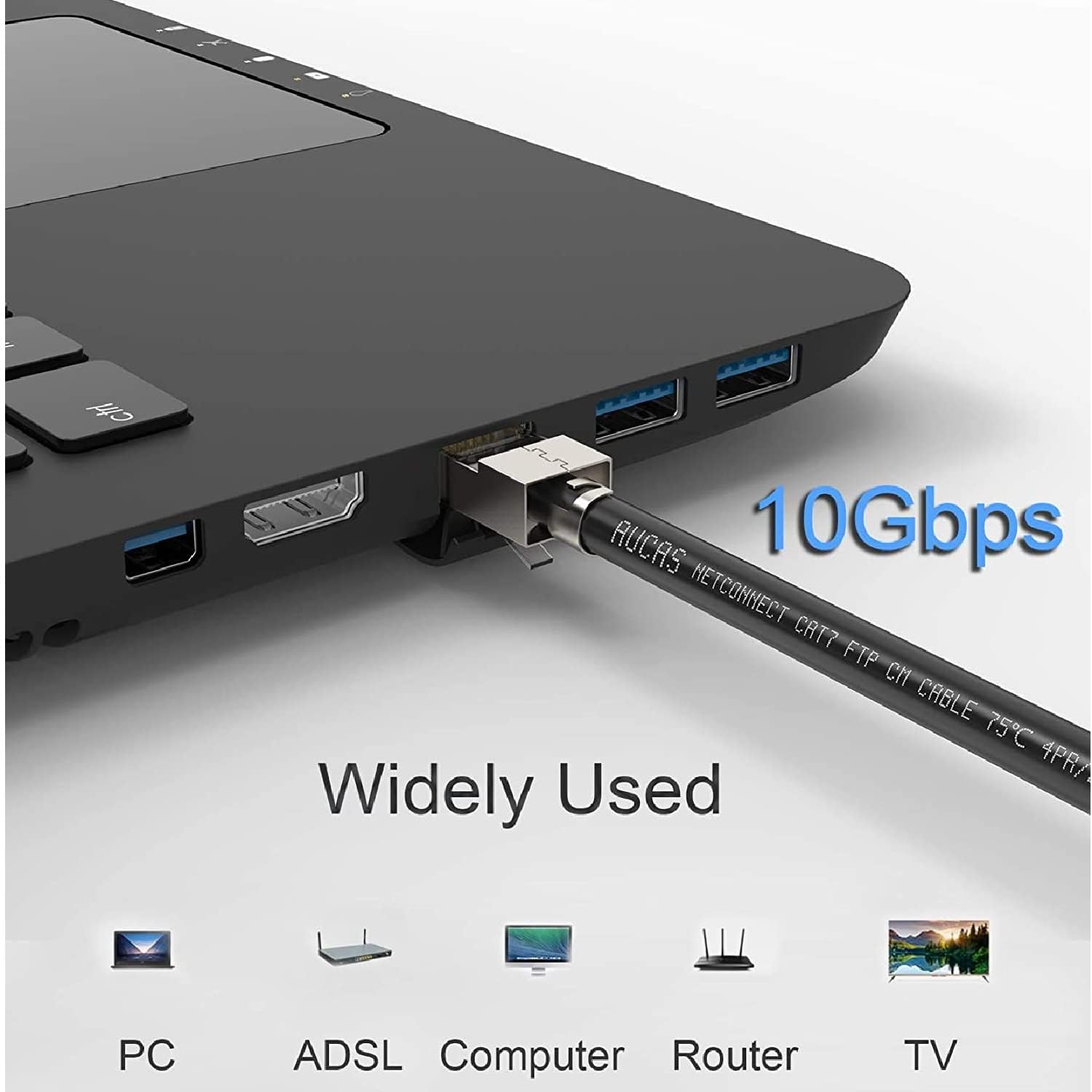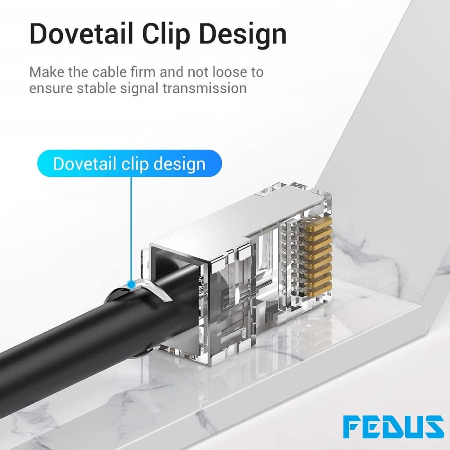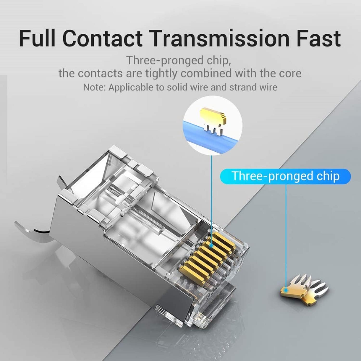 FEDUS 4 PCS RJ45 Cat7 & Cat6A Crimping Connectors plug, 50U Nickel Plated 3 Prong Shielded FTP/STP External Ground for 23 AWG (0.573mm) Network Cable, Metal Shielded, RJ45 8P8C Modular Plug