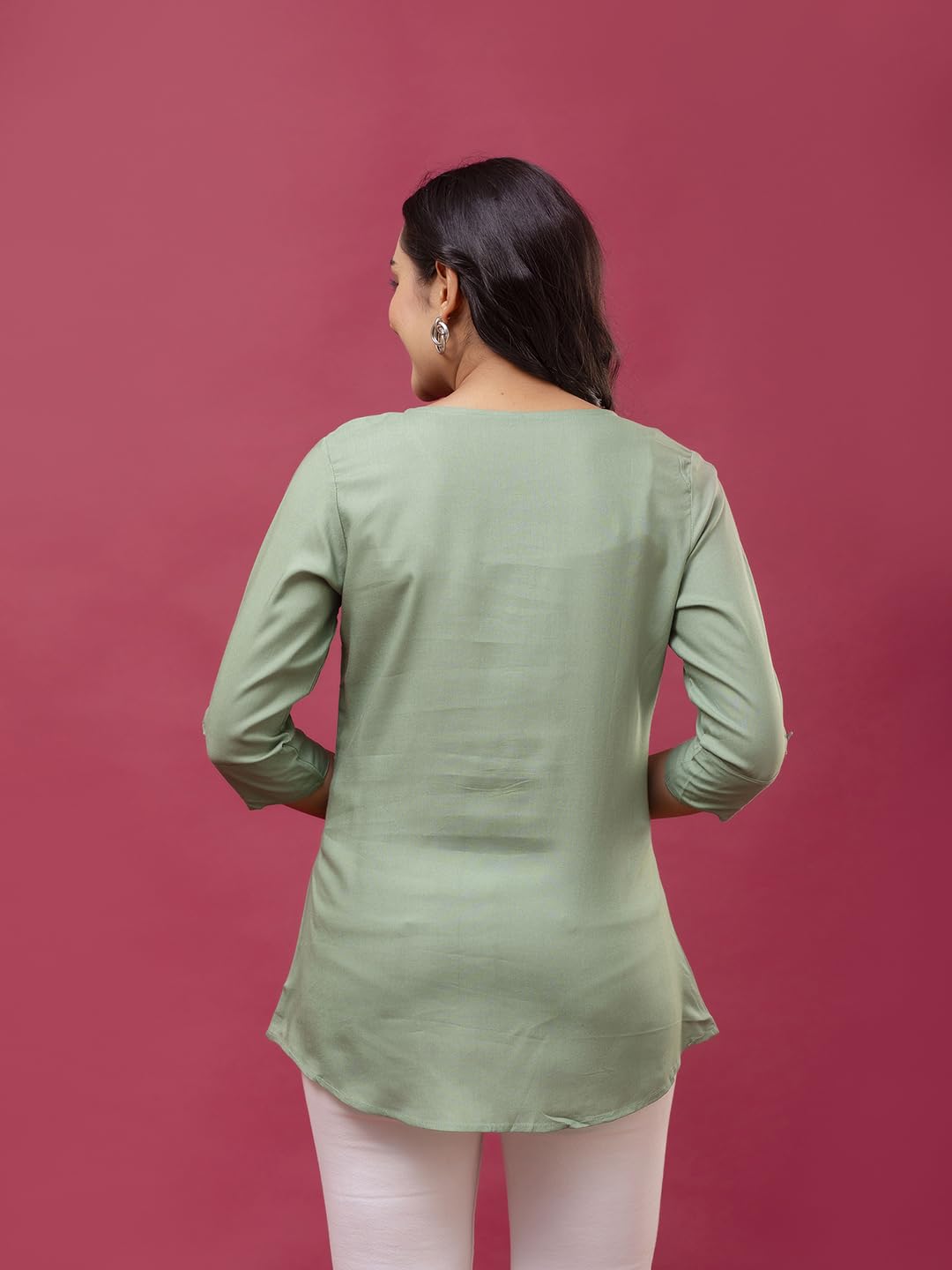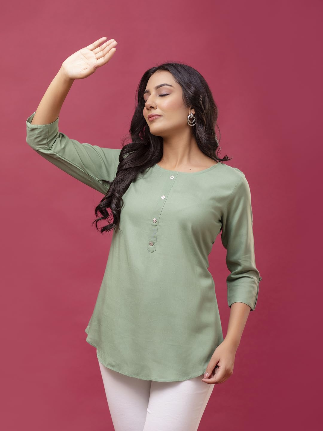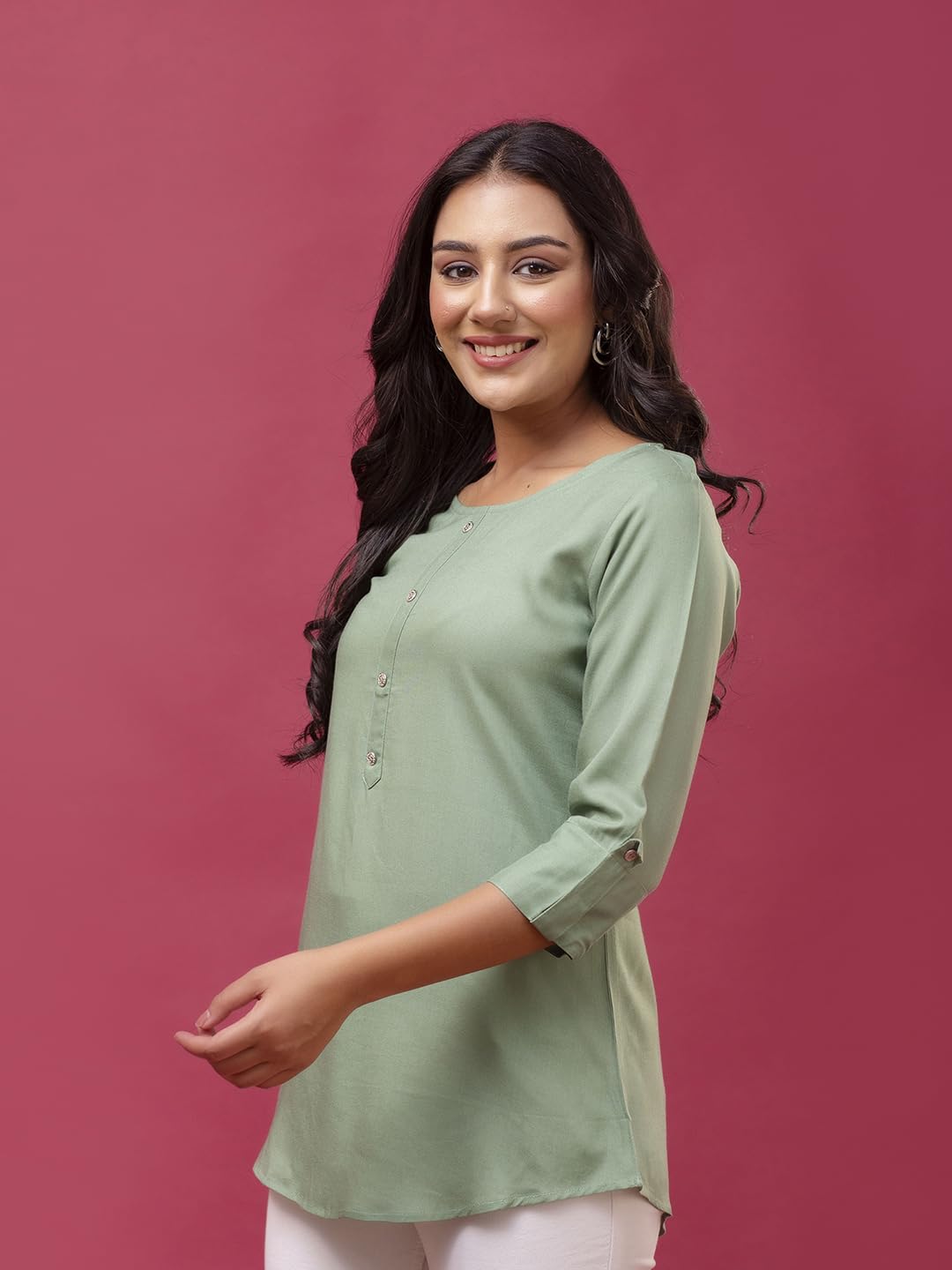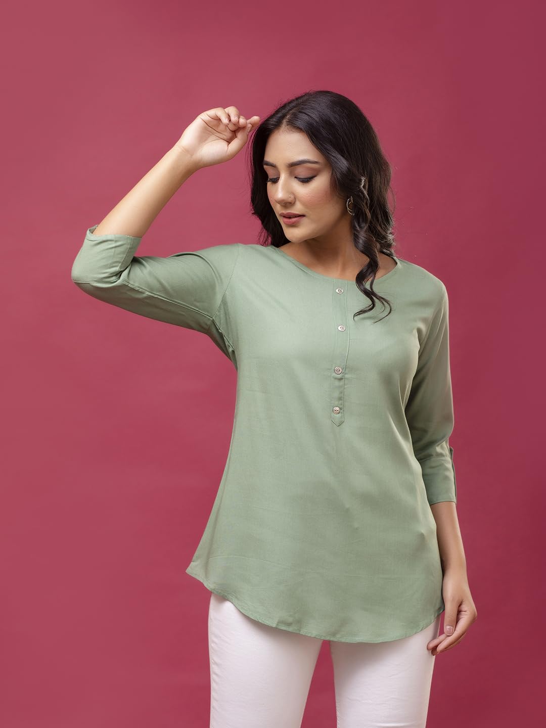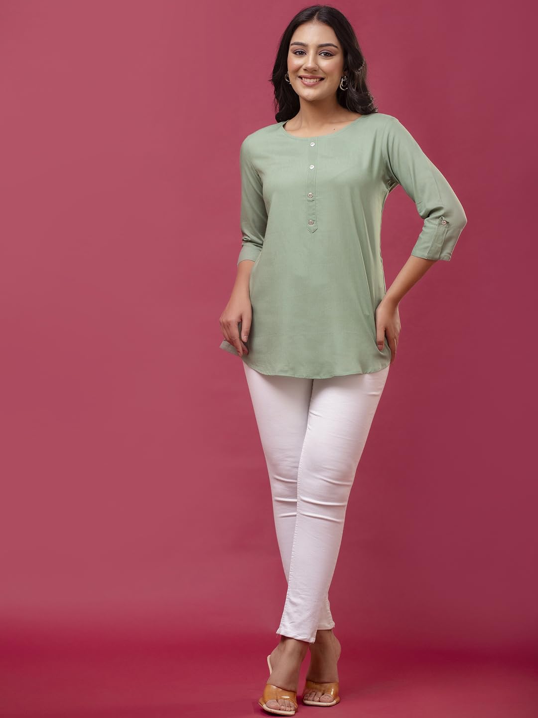 feranoid Solid Hip Length 3/4 Sleeves Tunic