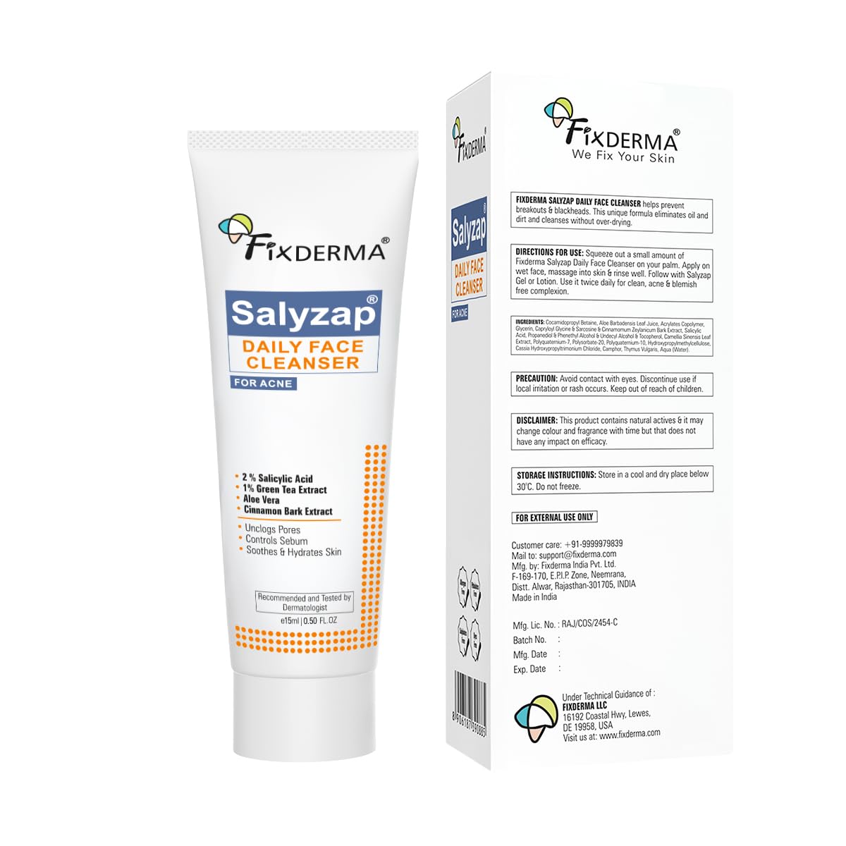 Be the first to review “Fixderma Salyzap Face Cleanser 2% Salicylic Acid for Oily & Acne Prone Skin Face Wash – 15 gm”