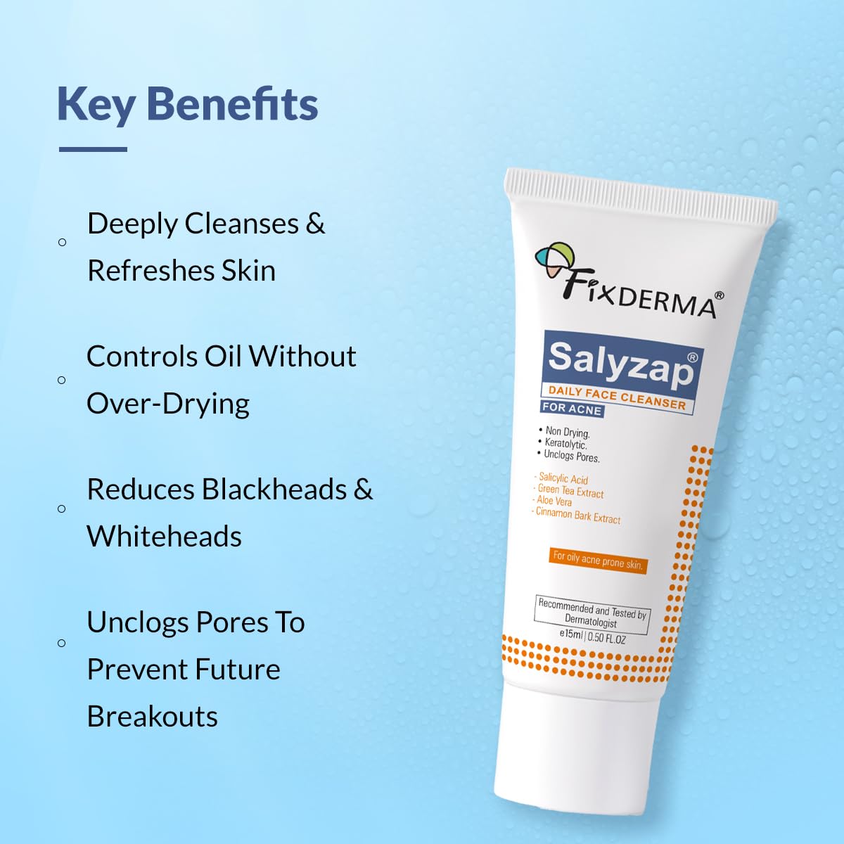 Fixderma Salyzap Face Cleanser 2% Salicylic Acid for Oily & Acne Prone Skin Face Wash – 15 gm