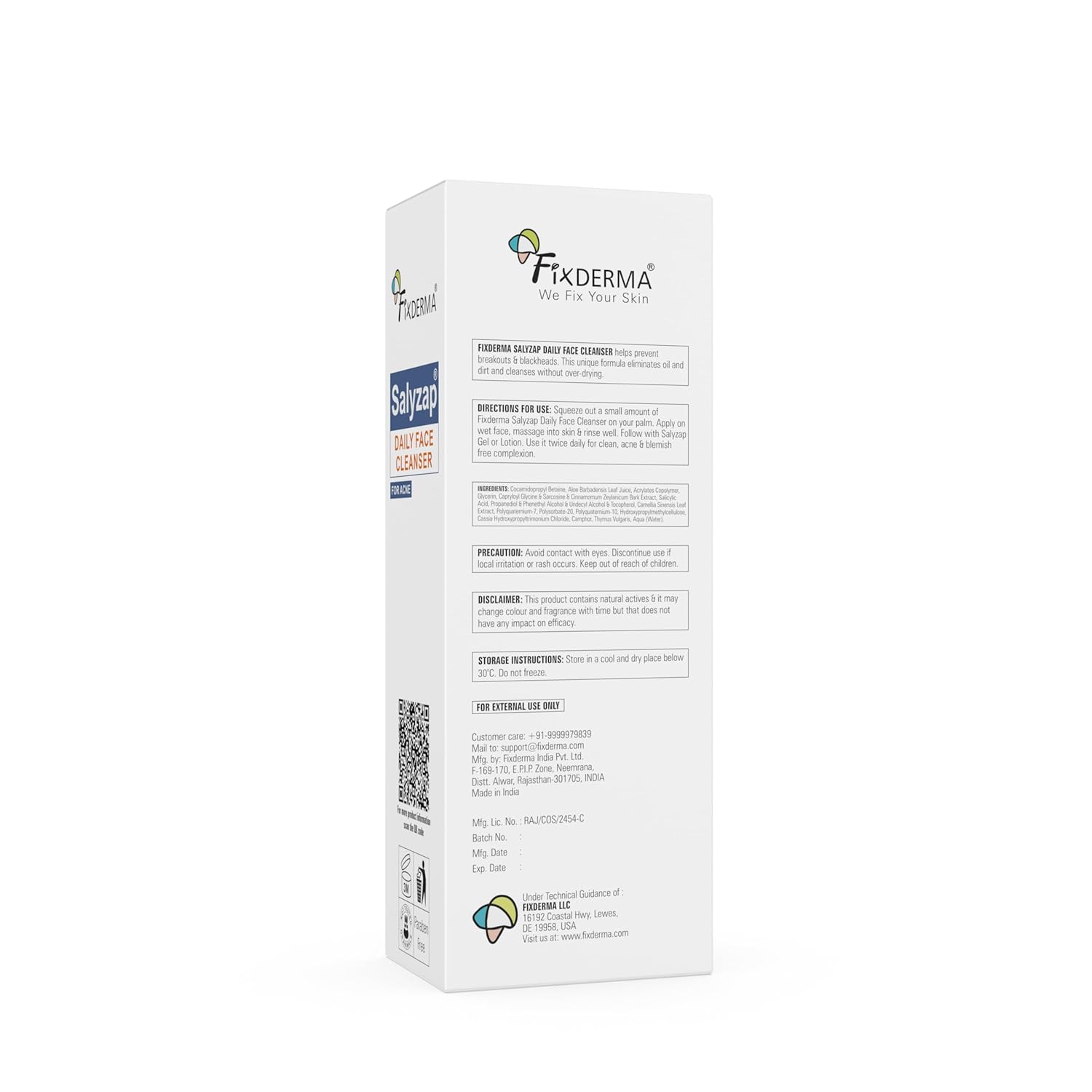 Manufacturer : Fixderma India Pvt Ltd. F-170, E.P.I.P. Zone, Neemrana, Dist. Alwar, Rajasthan – 301705, India (+91 9999979839), Fixderma India Pvt. Ltd.