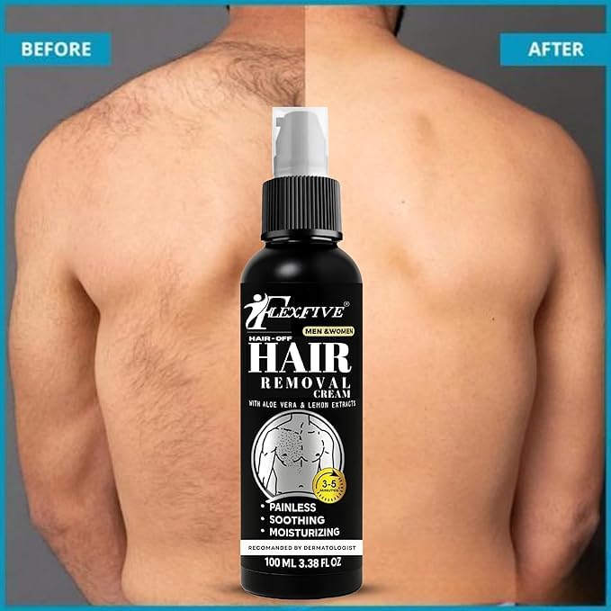 Ditch the harsh razor blades and painful waxing strips. Flexfive uses a skin-soothing formula enriched with Aloe Vera & Lemon Extracts to remove hair gently and effectively—no nicks, no ouch.