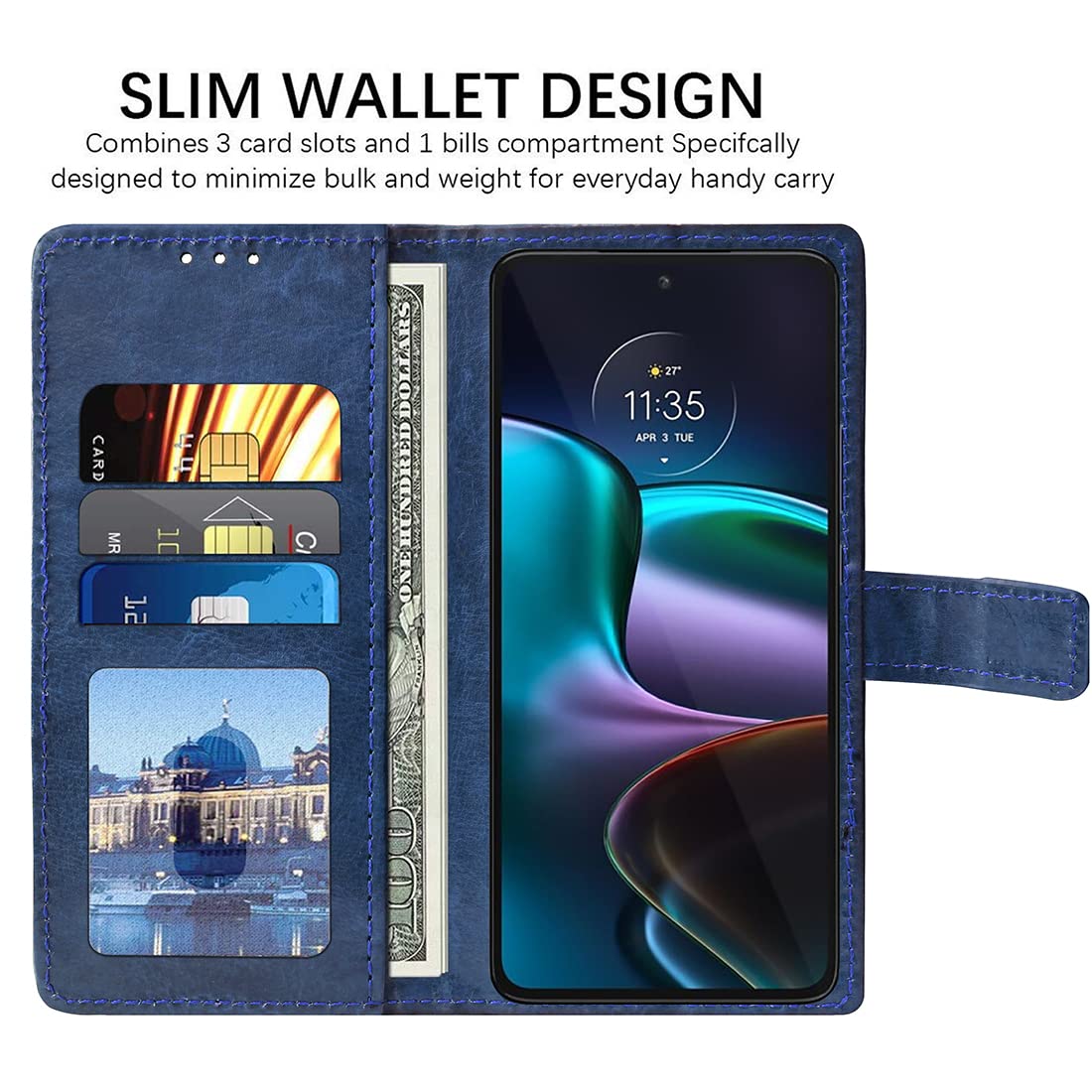 Flip Cover Back Case for Motorola Edge 30 5G | Premium Leather Finish | Inbuilt Pockets & Stand | Flip Cover Back Case for Motorola Edge 30 5G (Blue)