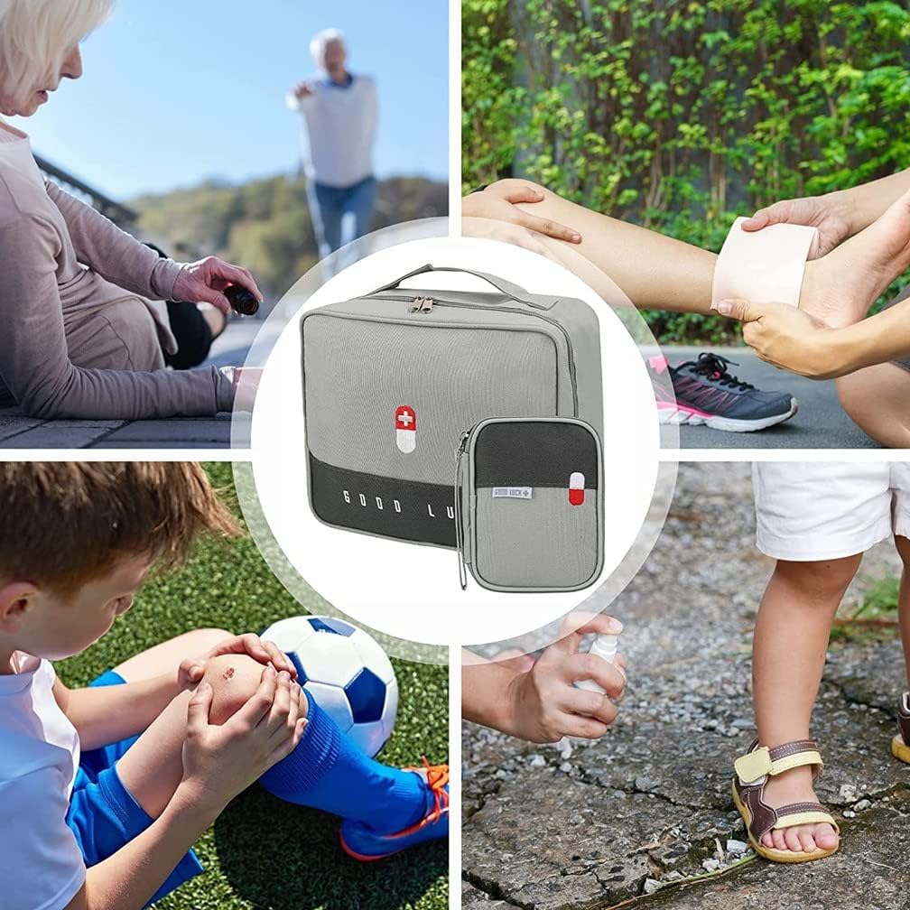 FLYNGO 2Pcs Medicine Pouch Empty First Aid Kit Bag for Travel, Home, Camping, Sports Emergency Survival Medicine Storage Bag (Grey)