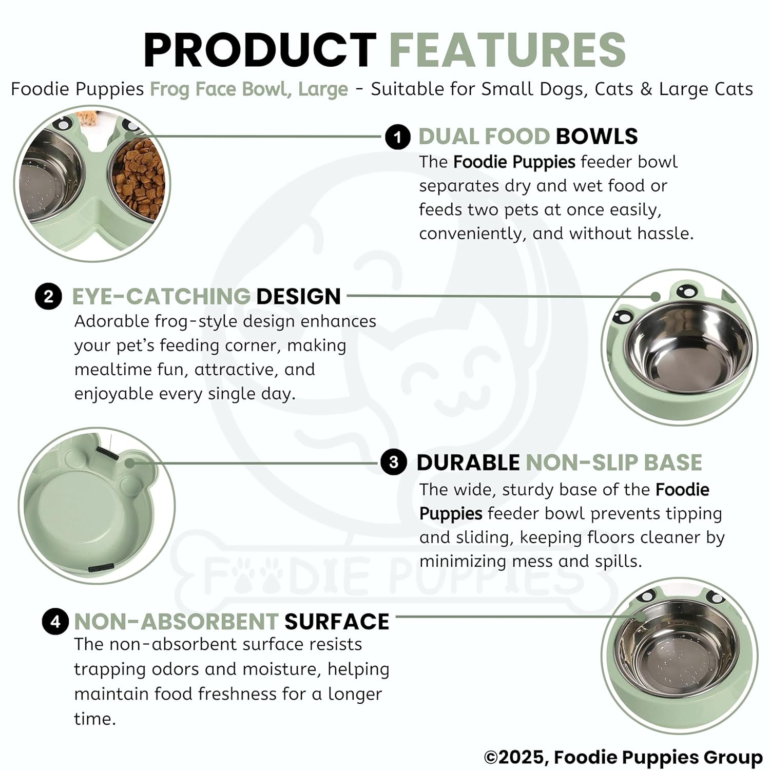 Foodie Puppies 2-in-1 Food and Water Bowl for Puppies, Cats & Kittens – (Frog Bowl Large, Green) 400ml Each | Non-Slip, Non-Toxic Pet Feeding Plastic Frog Face Shaped Double Bowl Food & Water Feeder