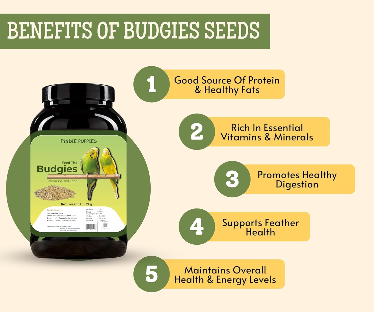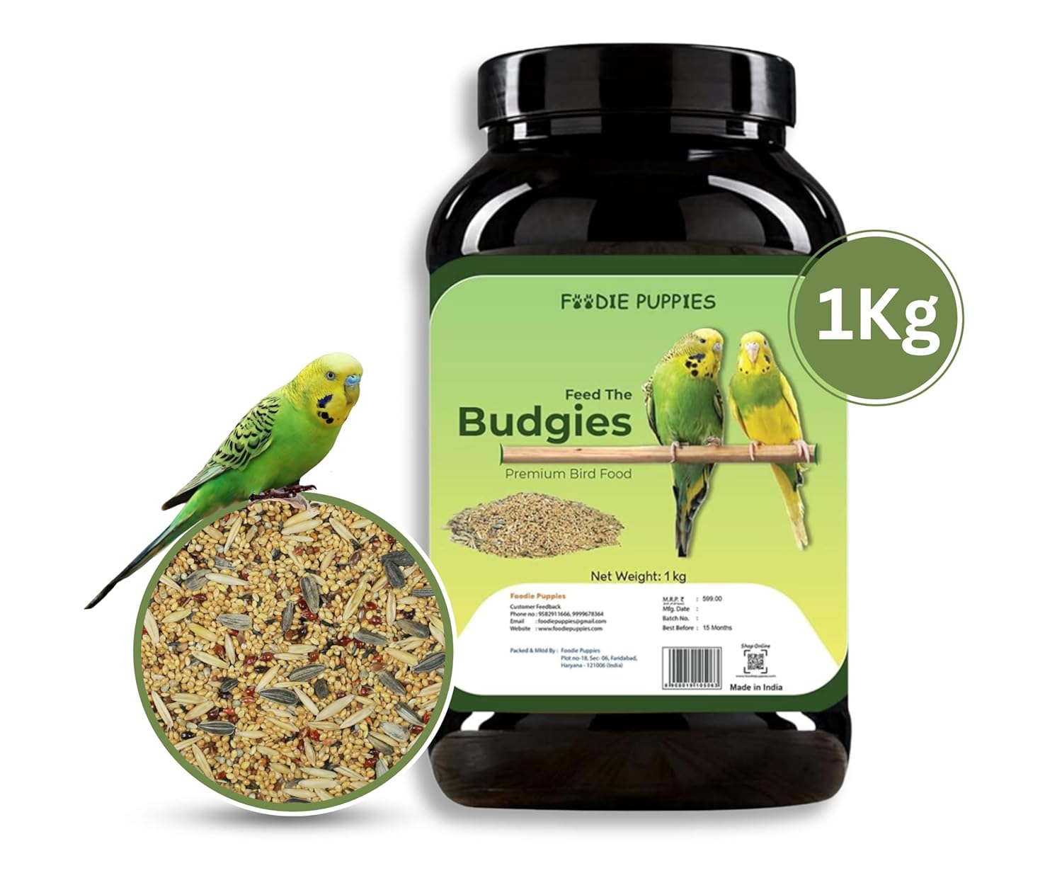 Foodie Puppies Bird Food for Budgies – 1Kg | Natural & Healthy Premium Mix Seeds, Canary, Yellow Proso, Browntop, Sunflower, Pearl, Oats, Niger | Daily Birds Food Seeds