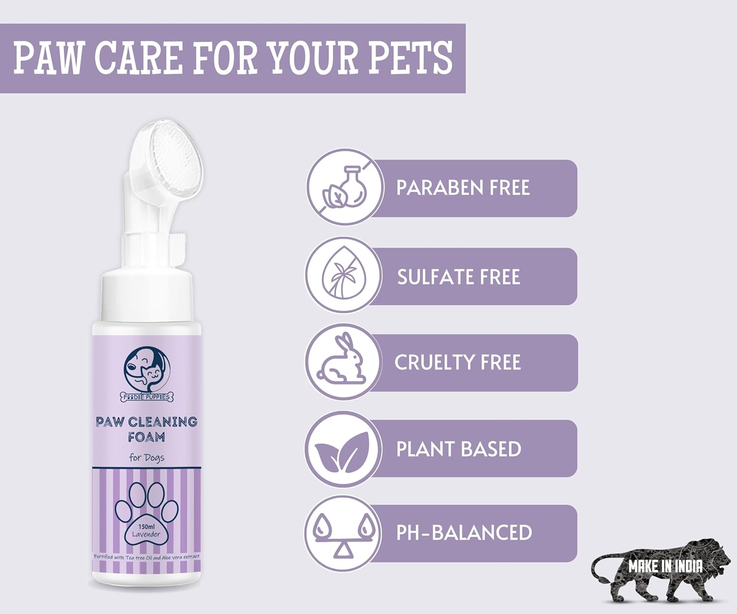 Be the first to review “Foodie Puppies Dog Paw Cleaning Foam with Silicone Brush – (Lavender, 150ml) | Lavender Paw Cleaner for Dog Foot Scrubber Cleaning Brush | Fortified with Tea Tree Oil and Aloe Vera Extract”