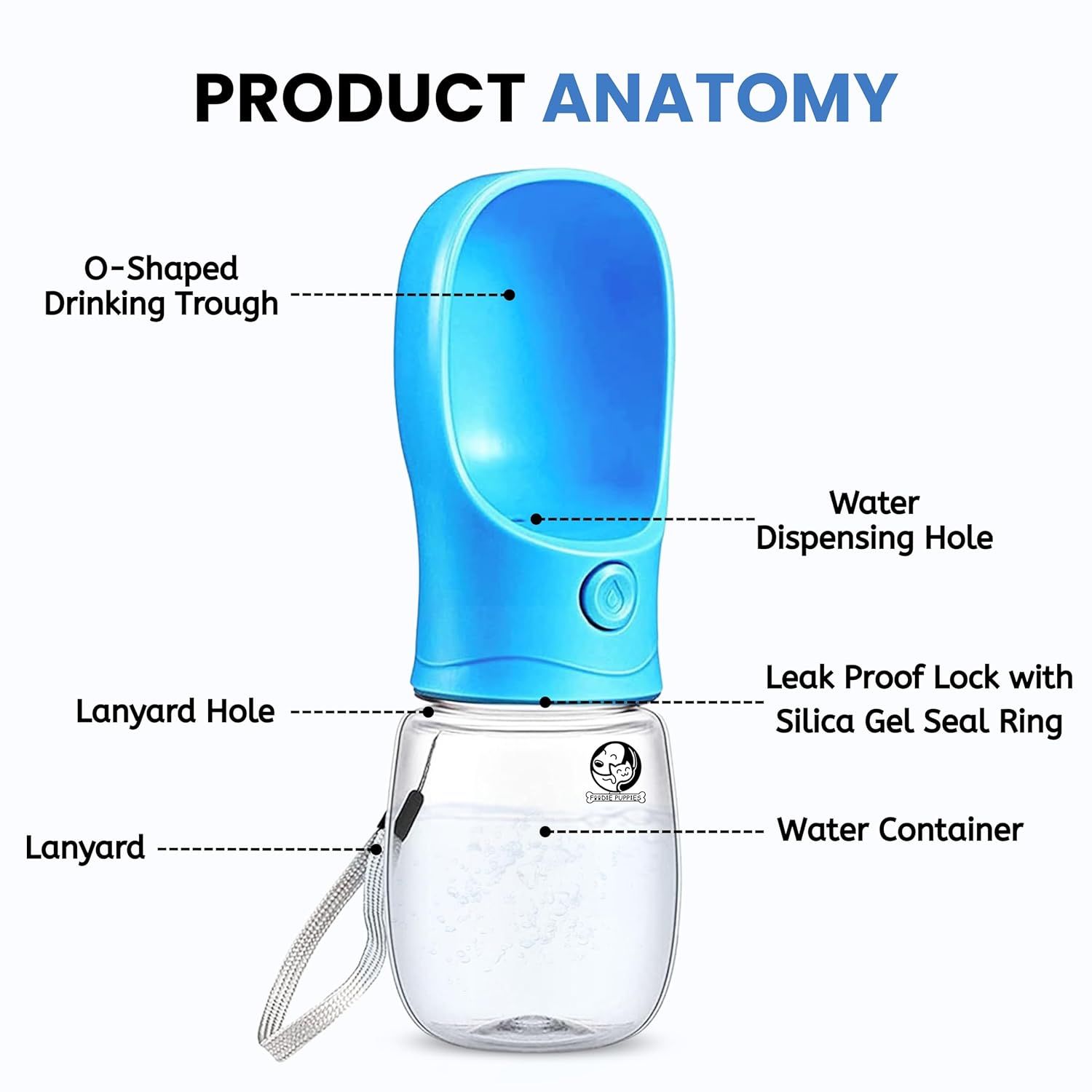 Foodie Puppies Dog Water Bottle, Leak Proof Portable Puppy Water Dispenser Drinking Feeder Pet Care Cup for Outdoor Walking, Hiking, Travel (350ml)
