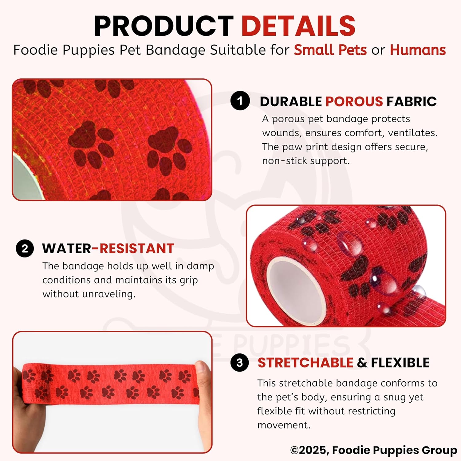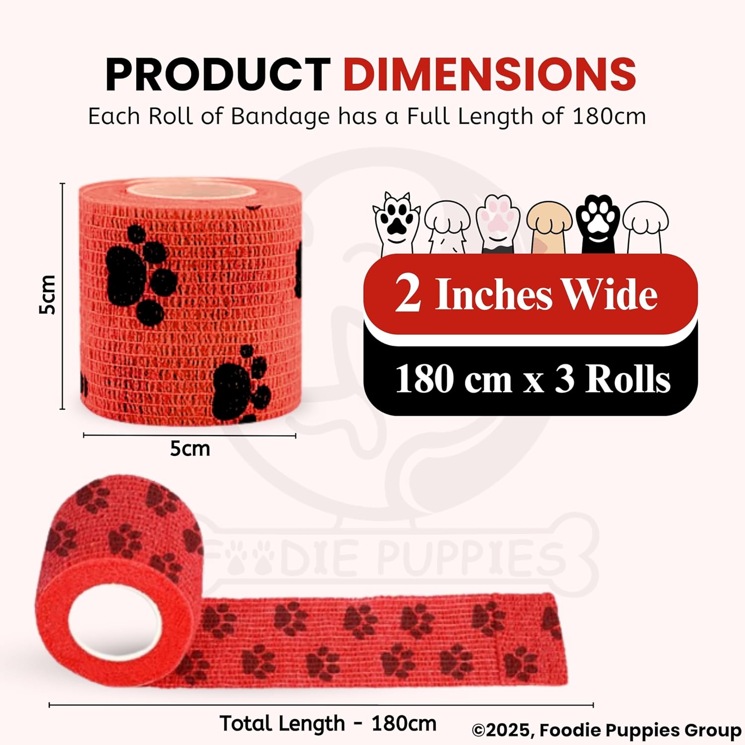 Foodie Puppies Kinesiology Vet Tape Wrap – (Pack of 3) | Self-Adhesive Bandage for Pets & Humans | Wound Care, Gauze First Aid for Dogs, Cats and Other Animals | Non-Woven Pet Bandage